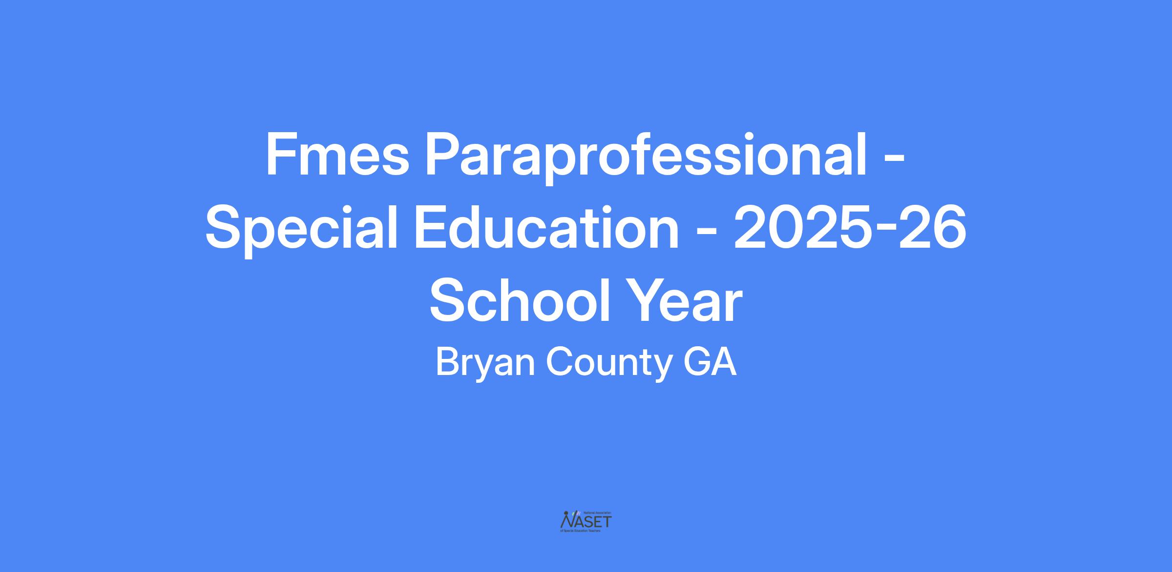 The Bryan County School System is accepting applications for a Special Education Paraprofessional for the 2025-26 school year at Frances Meeks Elementary School. The successful candidate must meet all GaPSC certification requirements for paraprofessionals.
