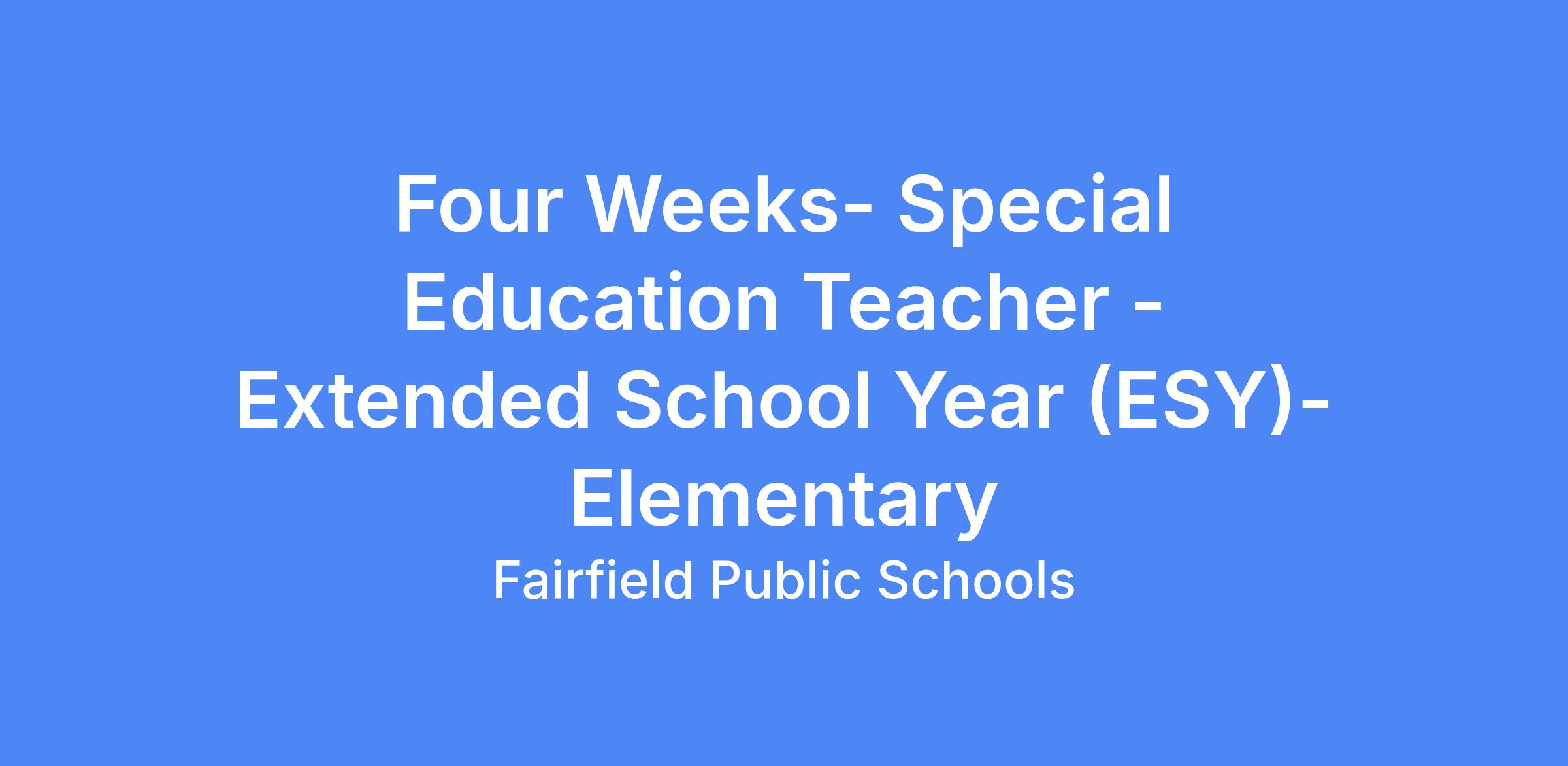 Special Education Teacher � Extended School Year (ESY)