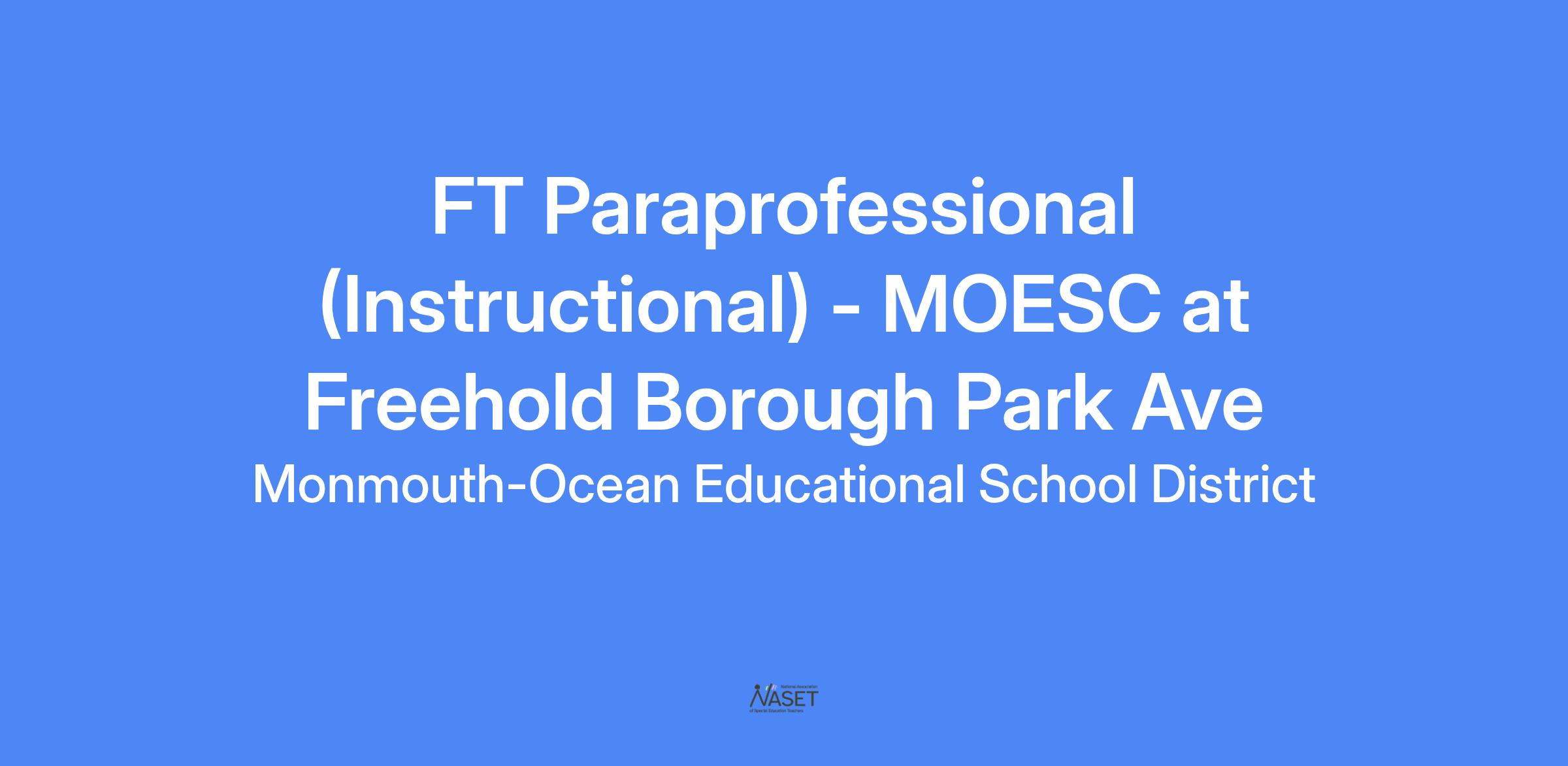 MOESC is seeking qualified applicants for an instructional assistant (paraprofessional) positions to support students at the Park Ave Elementary School in Freehold Borough School District, Monmouth County.