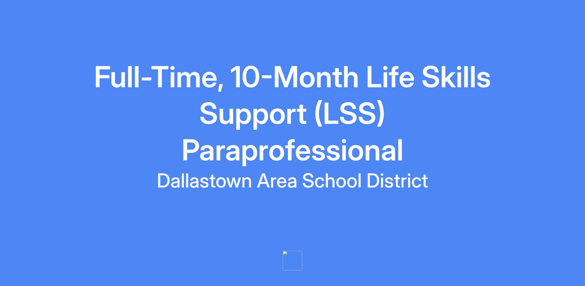 The Dallastown Area School District seeks a Full-Time, 10-Month Life Skills Support (LSS) Paraprofessional for Dallastown Area High School who will play a valuable role in inspiring and creating pathways for student success by supporting special education teachers in the delivery of supports and services for students with IEPs.