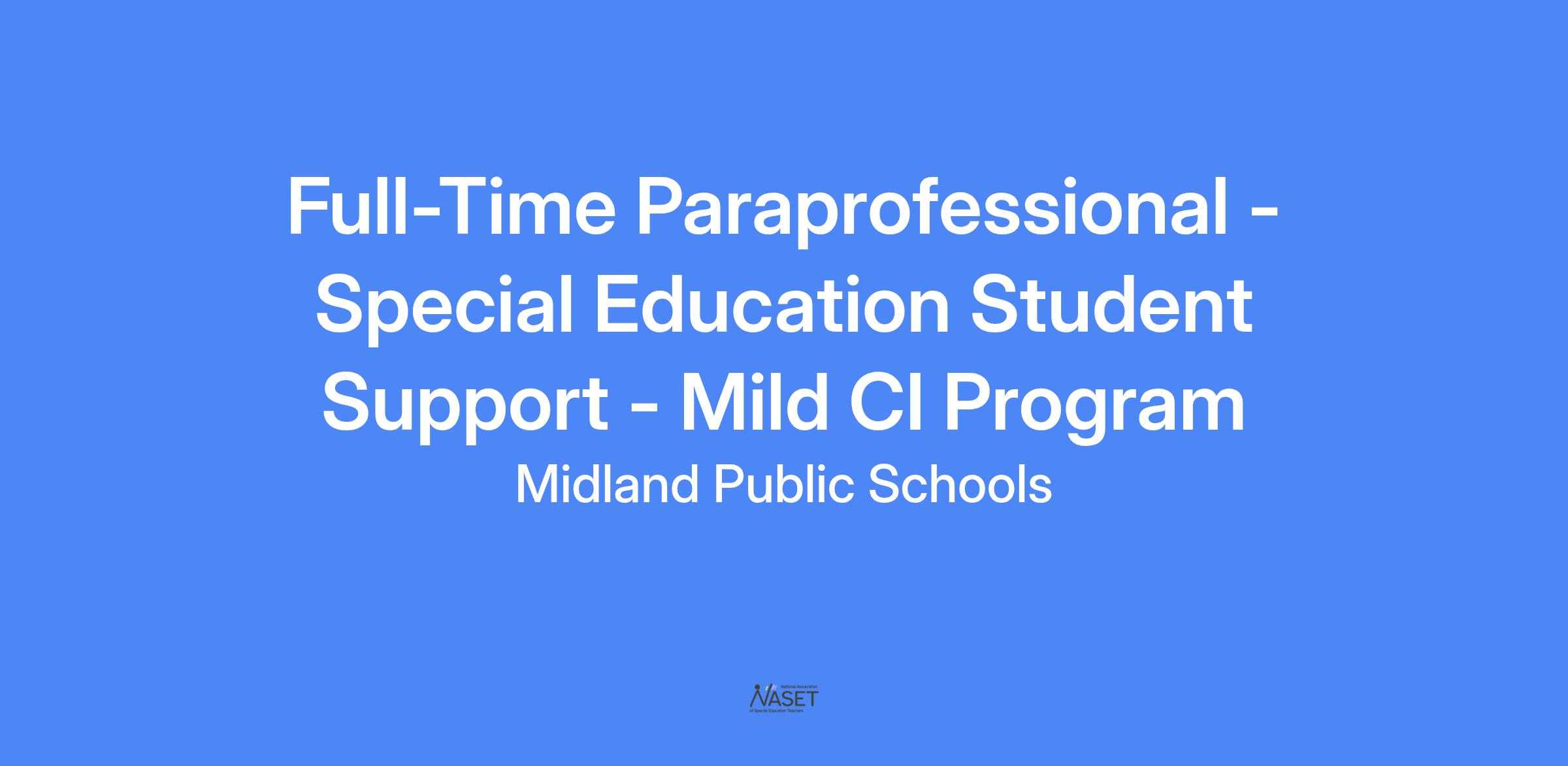 The Special Education Paraprofessional works with students receiving special education support within the Mild Cognitive Impairment (MCI) program.