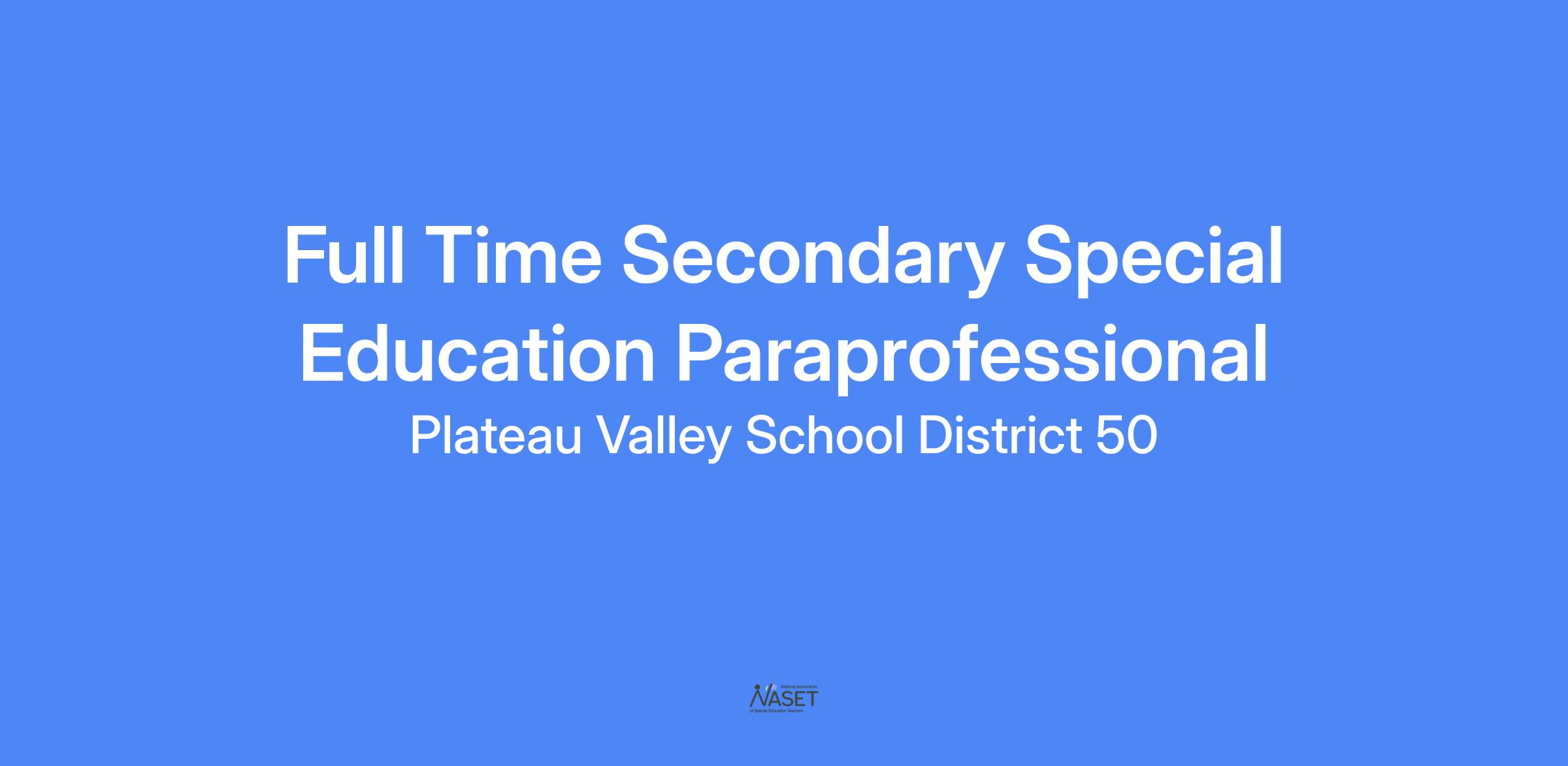We are looking for a motivated individual to join our team at Plateau Valley School District as a full time Special Education Paraprofessional.