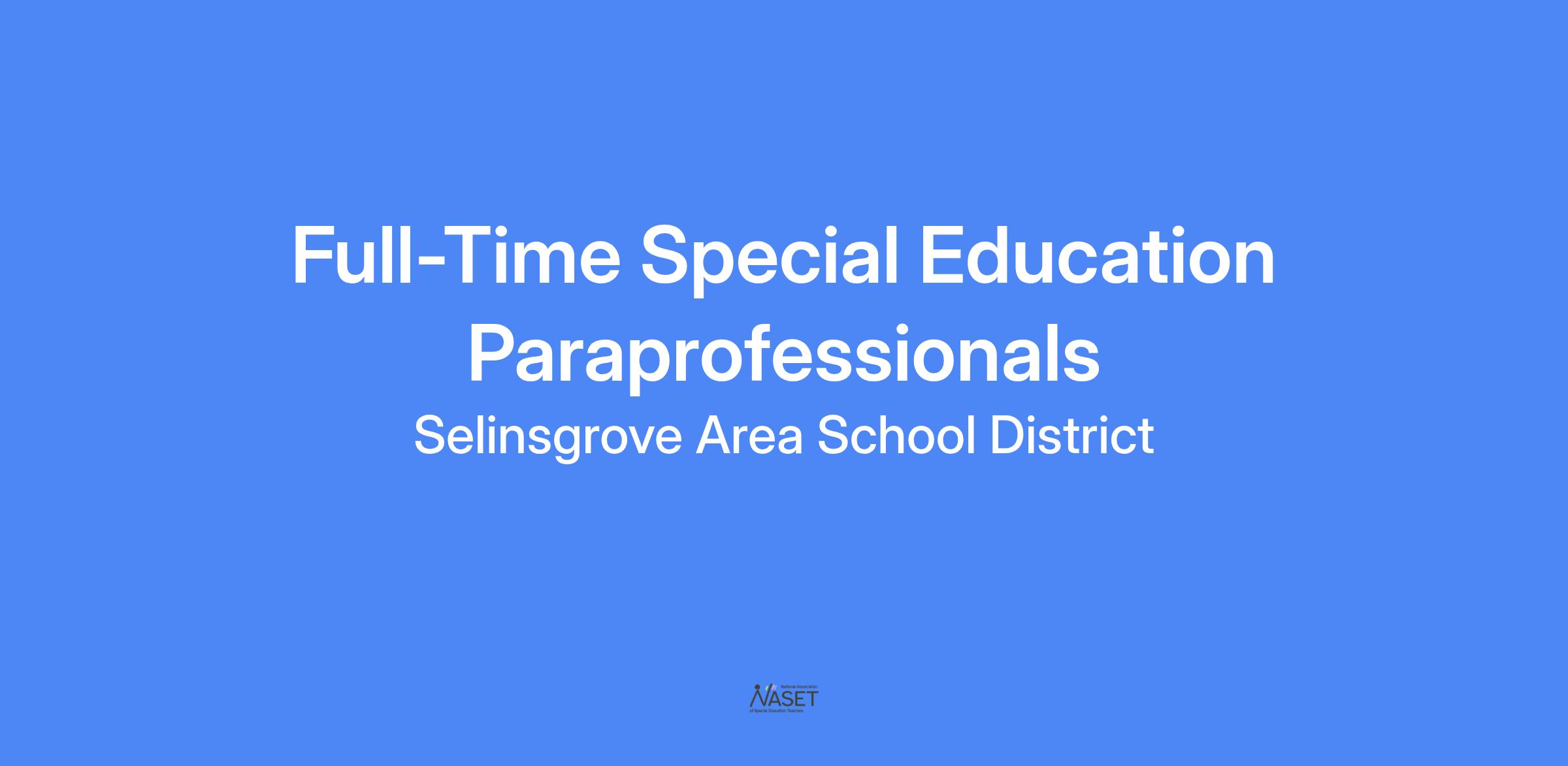 The Selinsgrove Area School District is seeking applicants for special education paraprofessionals. Positions are nine month, 7 hours per day (excluding lunch), student day only, and are non-medical/dental benefit eligible. Benefits include: paid sick and personal days, paid training/professional development, and PA School Employee Retirement System (PSERS) eligibility. Successful applicants will be required to obtain/provide current Act 34, 151 and 114 clearances, as well as complete Mandated Reporter training.