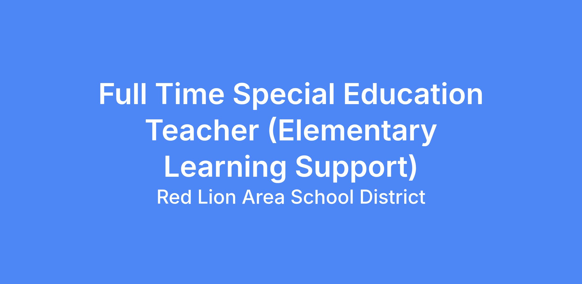 The Red Lion Area School District is looking for a certified Full Time Special Education Elementary Learning Support Teacher at Pleasant View Elementary School.