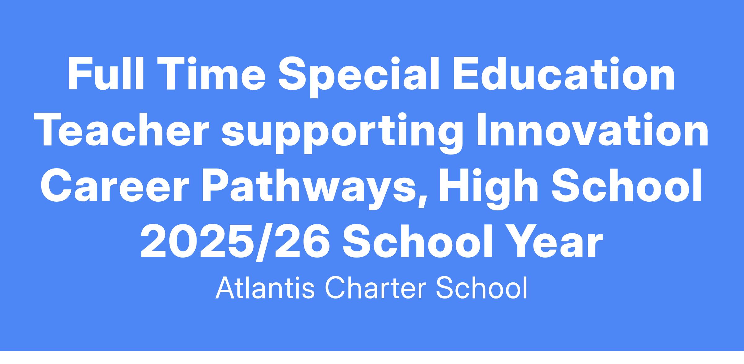 This position will specifically provide Special Education supports to our students, as needed, in the High School Innovation Career Pathway classes. The Special Education teacher will assist students in accessing the curriculum and will model and ensure IEP modifications and accommodations are understood and implemented. In addition, the special education teacher will work collaboratively with Career Academy teachers in helping them adapt curriculum and assessments as appropriate, along with providing education and consultation on special education best practices.