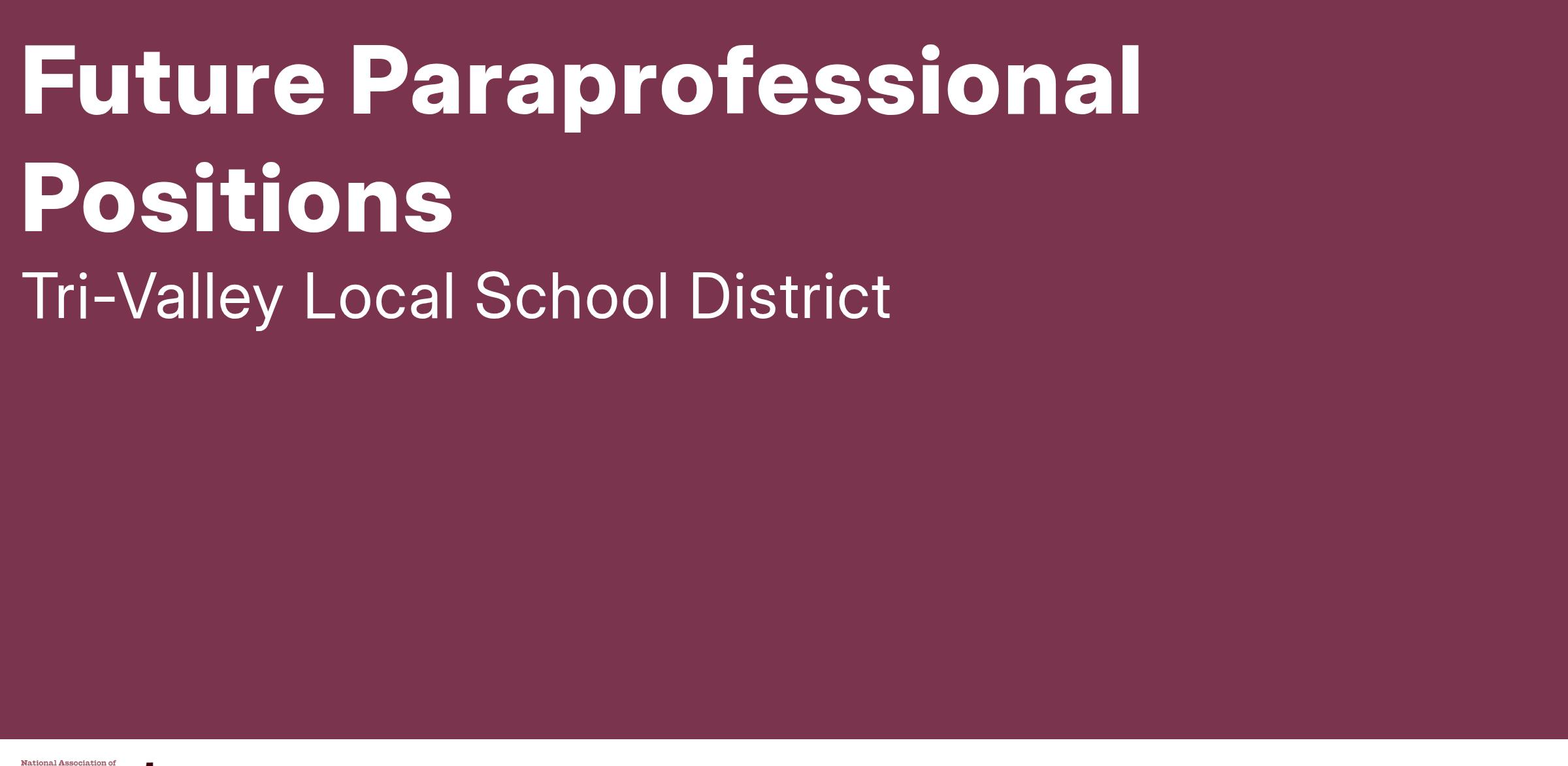 This notice is to announce that classified openings may be available in the Tri-Valley Local School District. These potential openings may arise due to upcoming retirements or resignations. The district is announcing these possible positions so that we might have a viable applicant pool should a vacancy arise, but in no way is guaranteeing that any vacancies will exist.