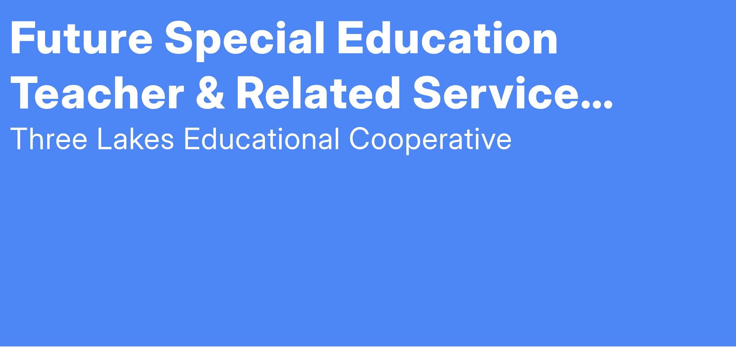 Three Lakes Educational Cooperative is taking applications for future Special Education Teachers and Related Service Providers. Applicants must have, or be eligible for, Kansas State Licensure appropriate to the assignment. We would be willing to consider applicants who are eligible for a provisional license in special education or applicants who are willing to work towards licensure through the waiver process depending on assignment.