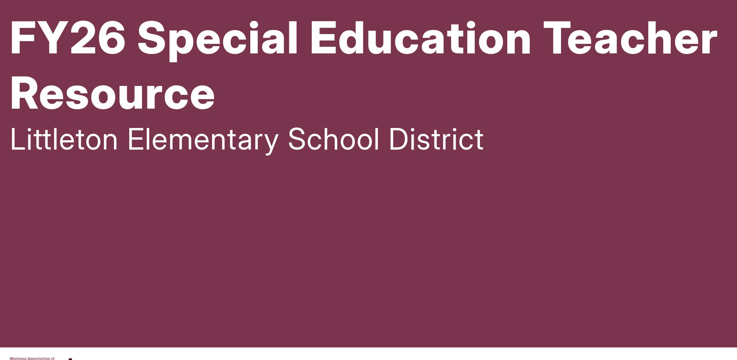 FY26 Special Education Teacher Resource