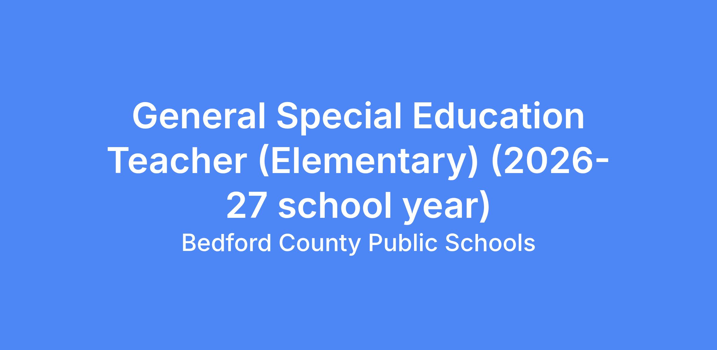This job description in no way states or implies that these are the only duties to be performed by this employee. The Special Education Teacher will be required to follow any other instructions and to perform any other related duties as assigned by the Principal or appropriate administrator. Bedford County Public Schools reserves the right to update, revise or change this job description and related duties at any time.