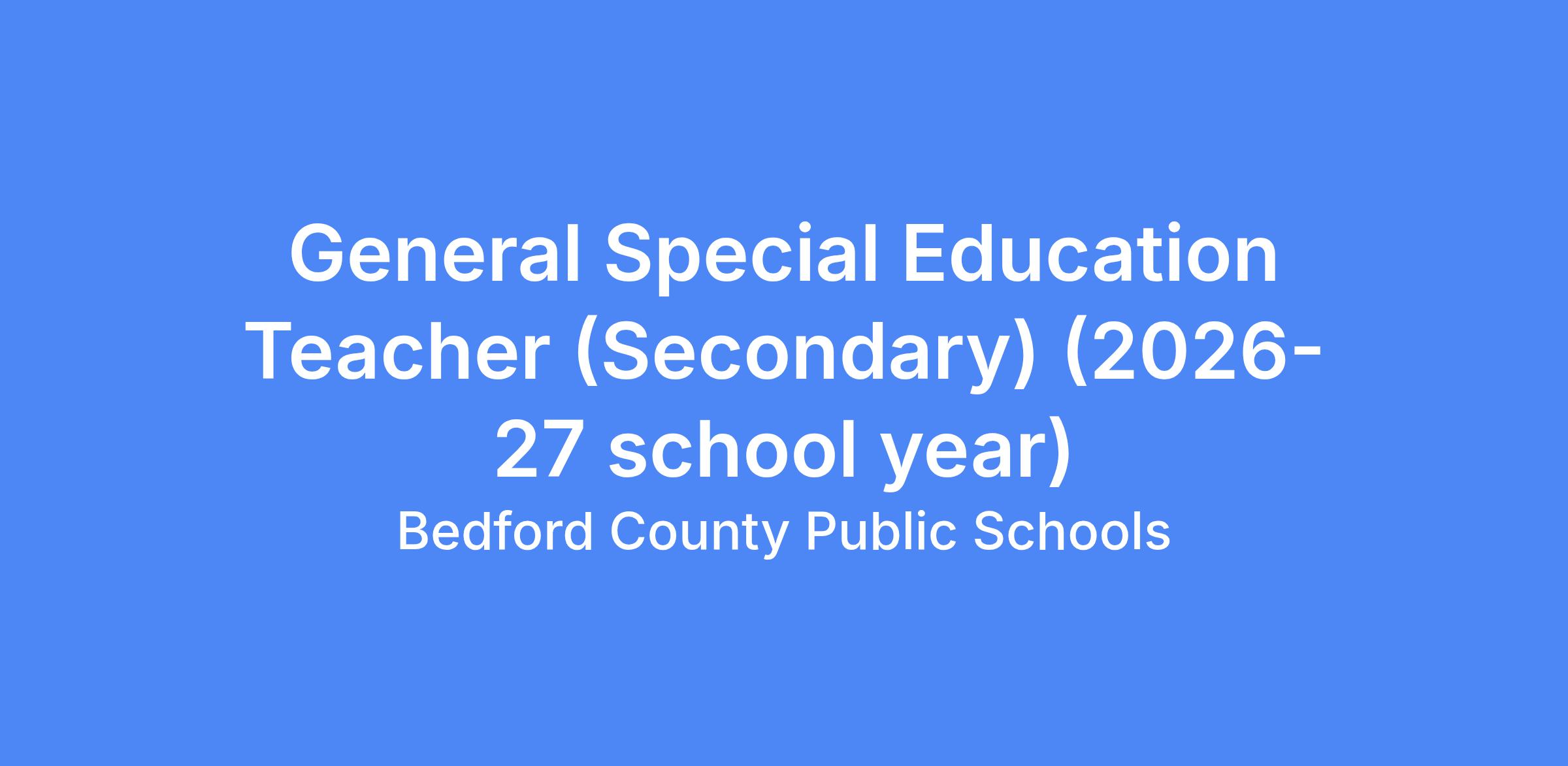 This job description in no way states or implies that these are the only duties to be performed by this employee. The Special Education Teacher will be required to follow any other instructions and to perform any other related duties as assigned by the Principal or appropriate administrator. Bedford County Public Schools reserves the right to update, revise or change this job description and related duties at any time.