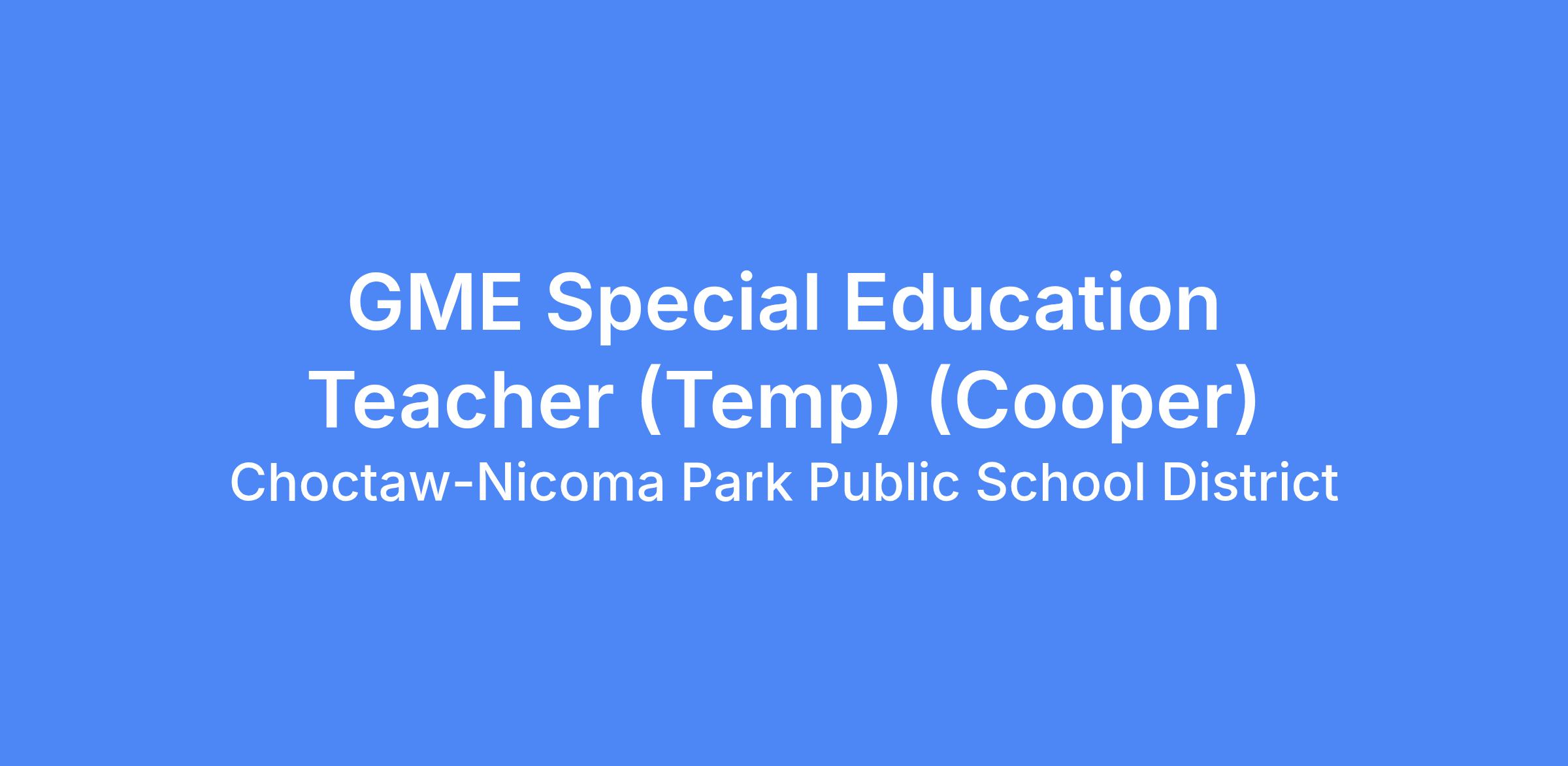 GME Special Education Teacher (Temp) (Cooper)