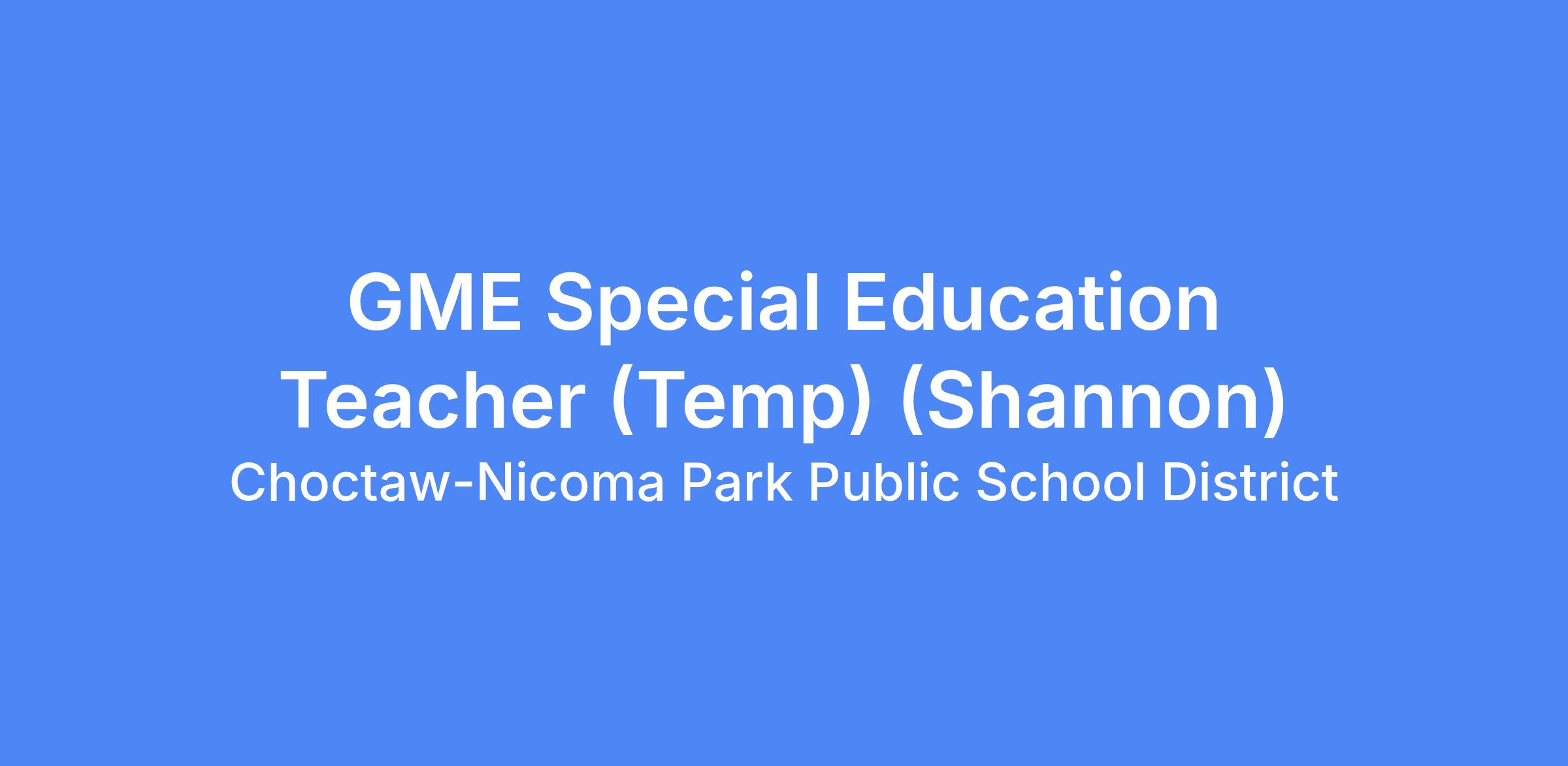 GME Special Education Teacher (Temp) (Shannon)