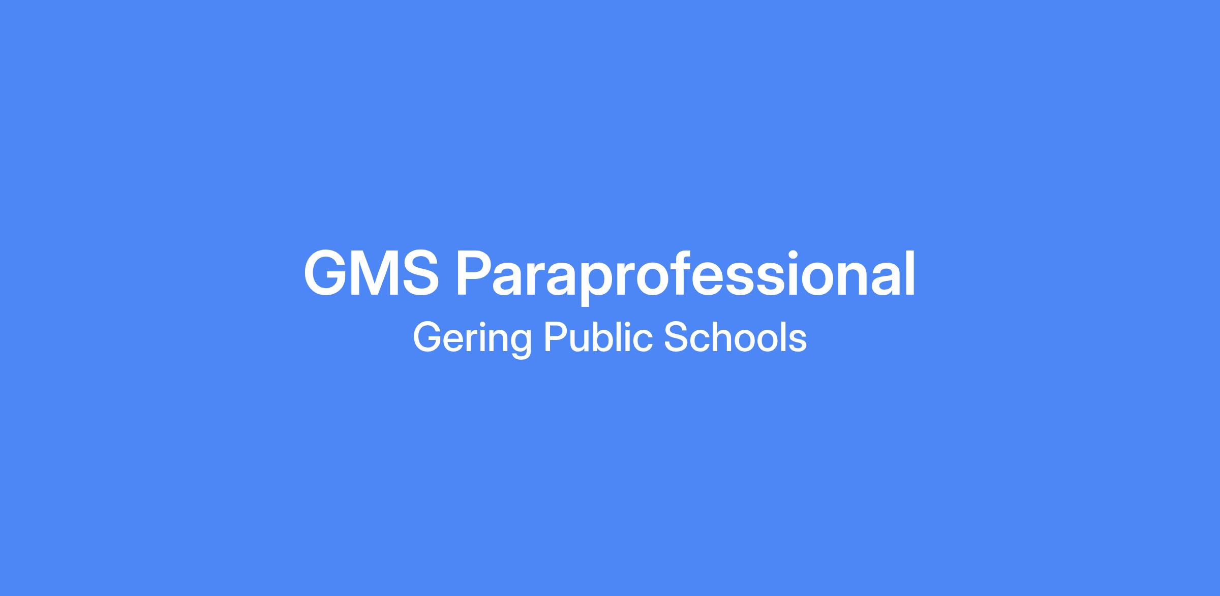 Gering Middle School is seeking paraprofessionals to add to their team for the 2025-26 school year. A classroom paraprofessional is needed to provide student support. This position would entail approximately 7.5 hours of service per day, Monday-Friday, when school is in session, and will pay based upon experience.
