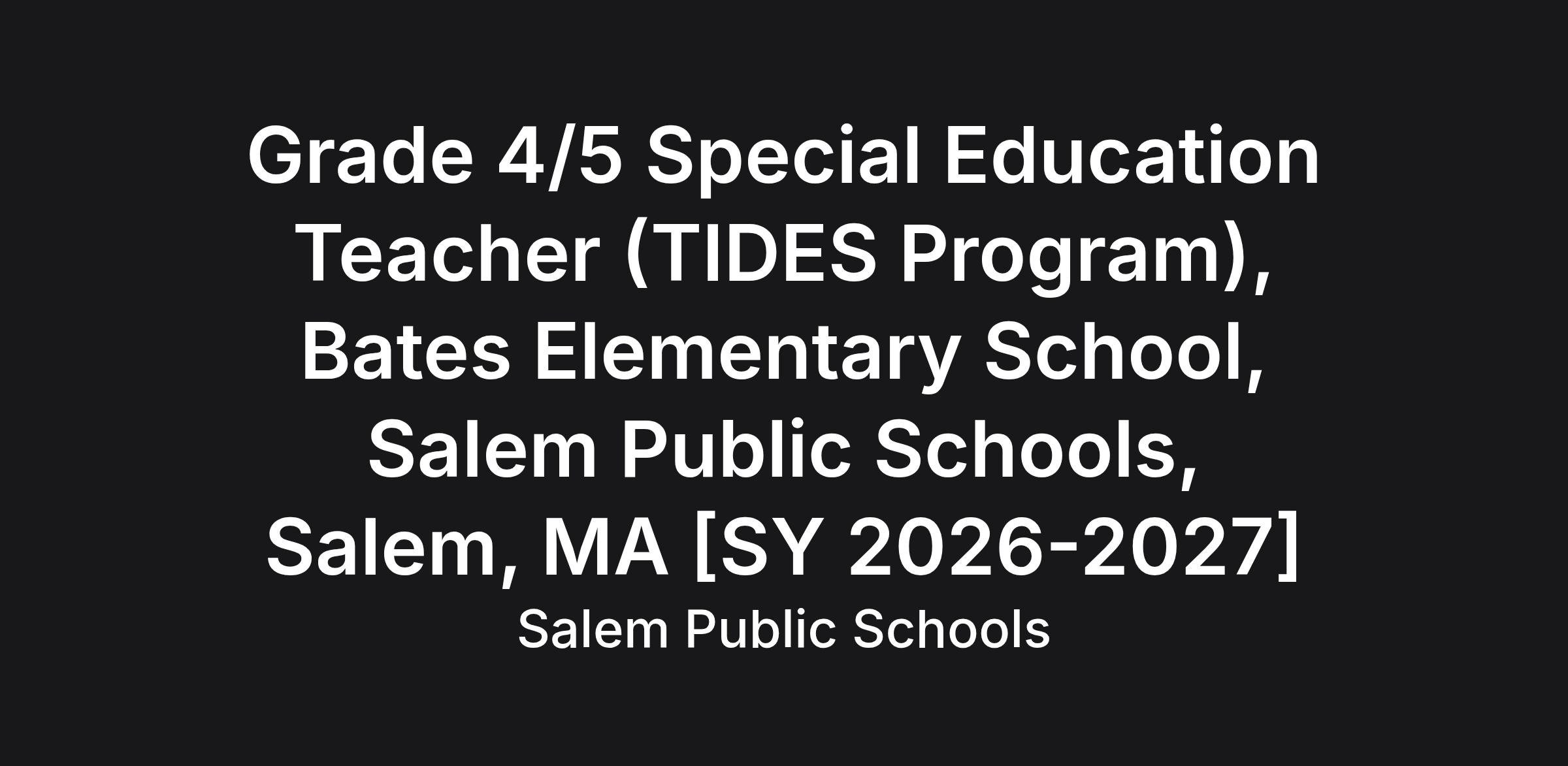 Grade 4/5 Special Education Teacher (TIDES Program), Bates Elementary School, Salem Public Schools, Salem, MA [SY 2026-2027]