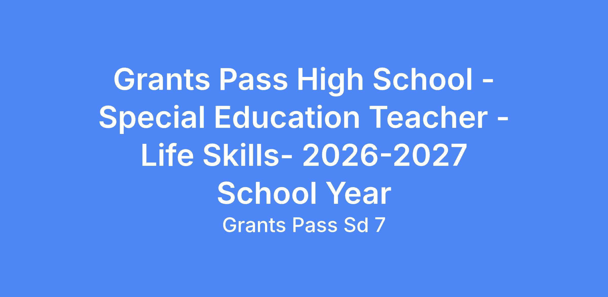 Grants Pass School District No. 7 is now accepting applications for the following position for the 2026-2027 school year: