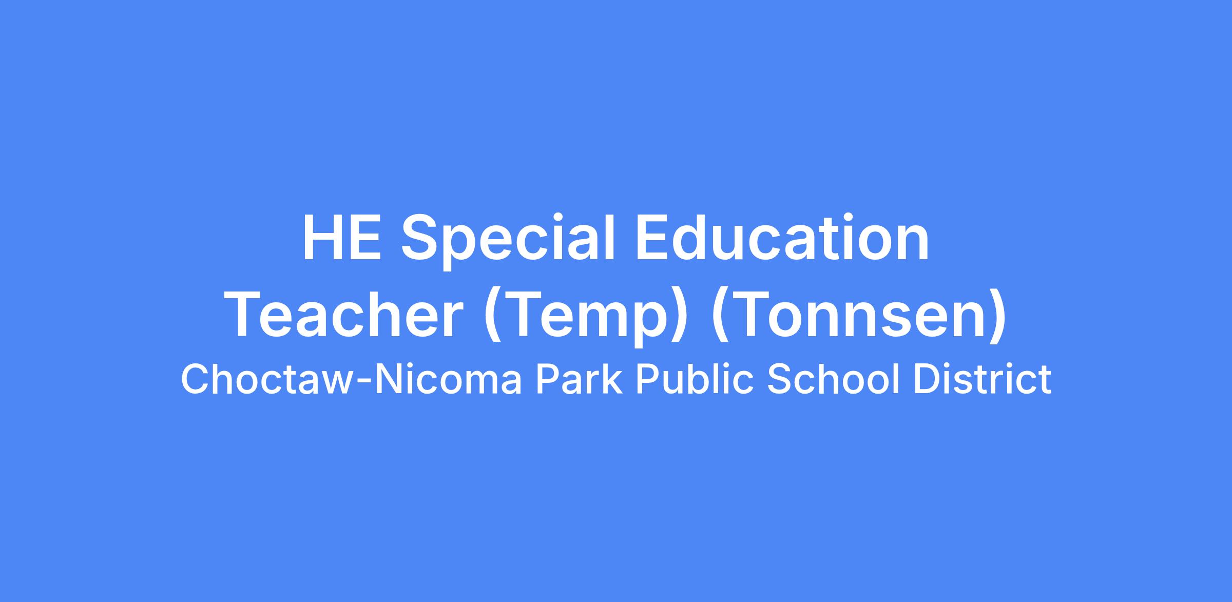 HE Special Education Teacher (Temp) (Tonnsen)