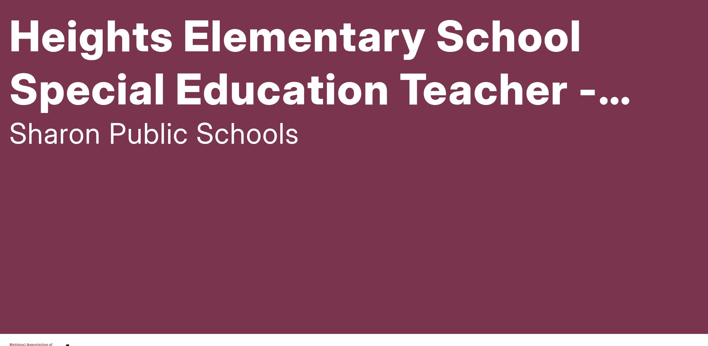 The Sharon Public Schools is seeking a 1.0 FTE special education teacher for students in the SOAR Program at Heights Elementary School.
