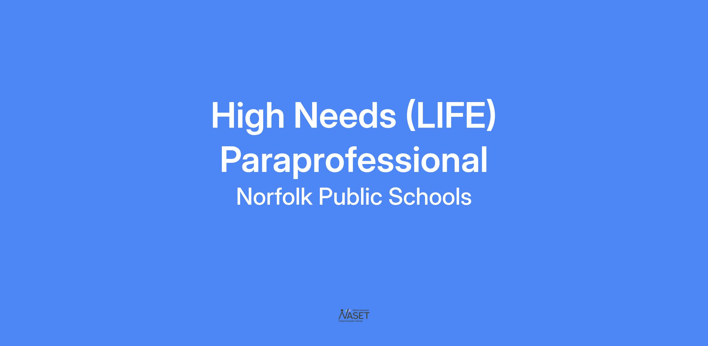JOB TITLE: HIGH NEEDS (LIFE) PARA - BEL AIR ELEMENTARY