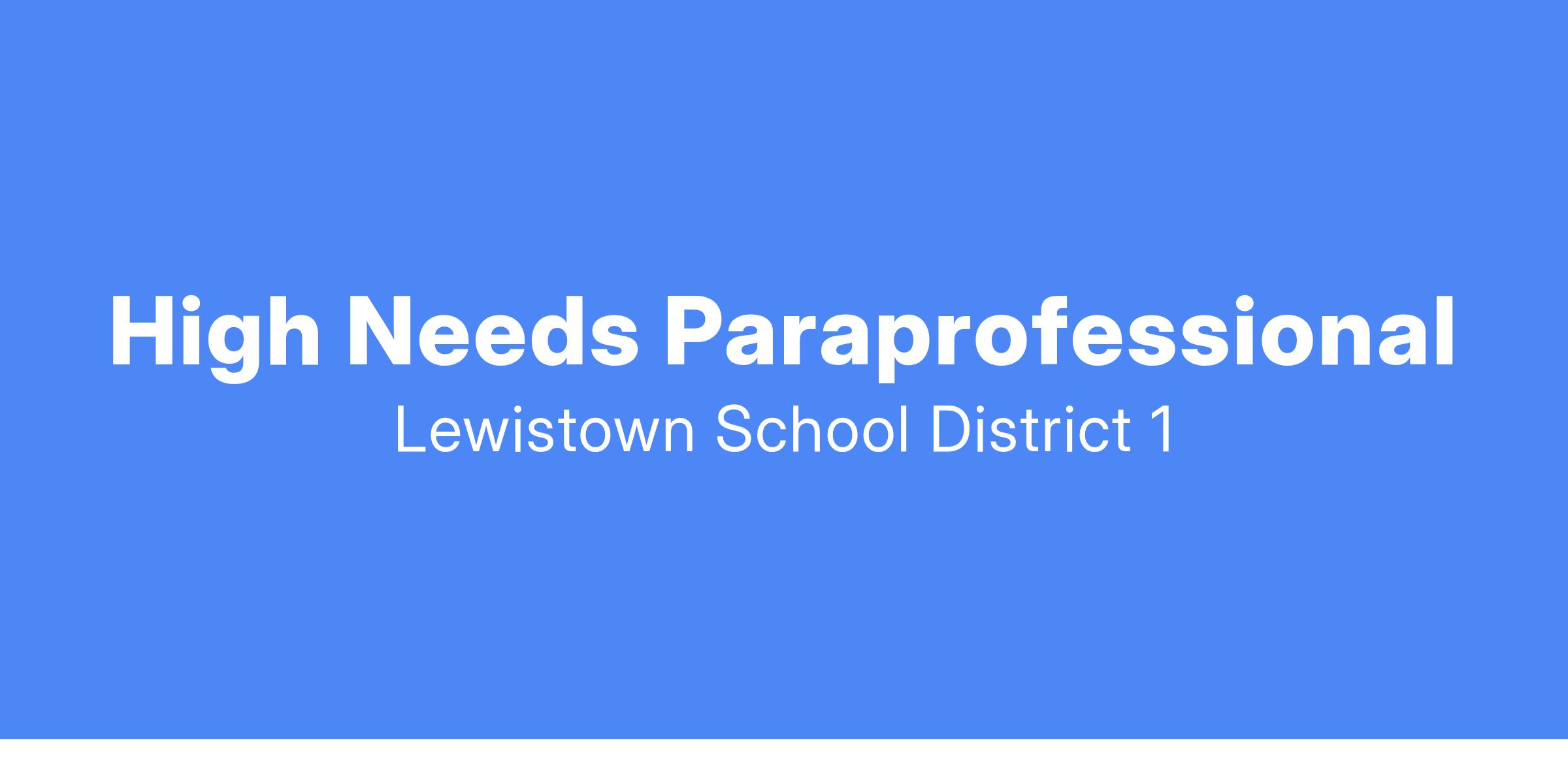 SUMMARY - The High Needs Paraprofessional works closely with students within a special needs setting on a regular basis in an effort to provide them with the support they need to be successful at school. A High Needs Paraprofessional typically works in a specialized setting such as our STAR Room or CARES Room - but could also work one-on-one with a student depending upon the student needs and least restrictive environment.