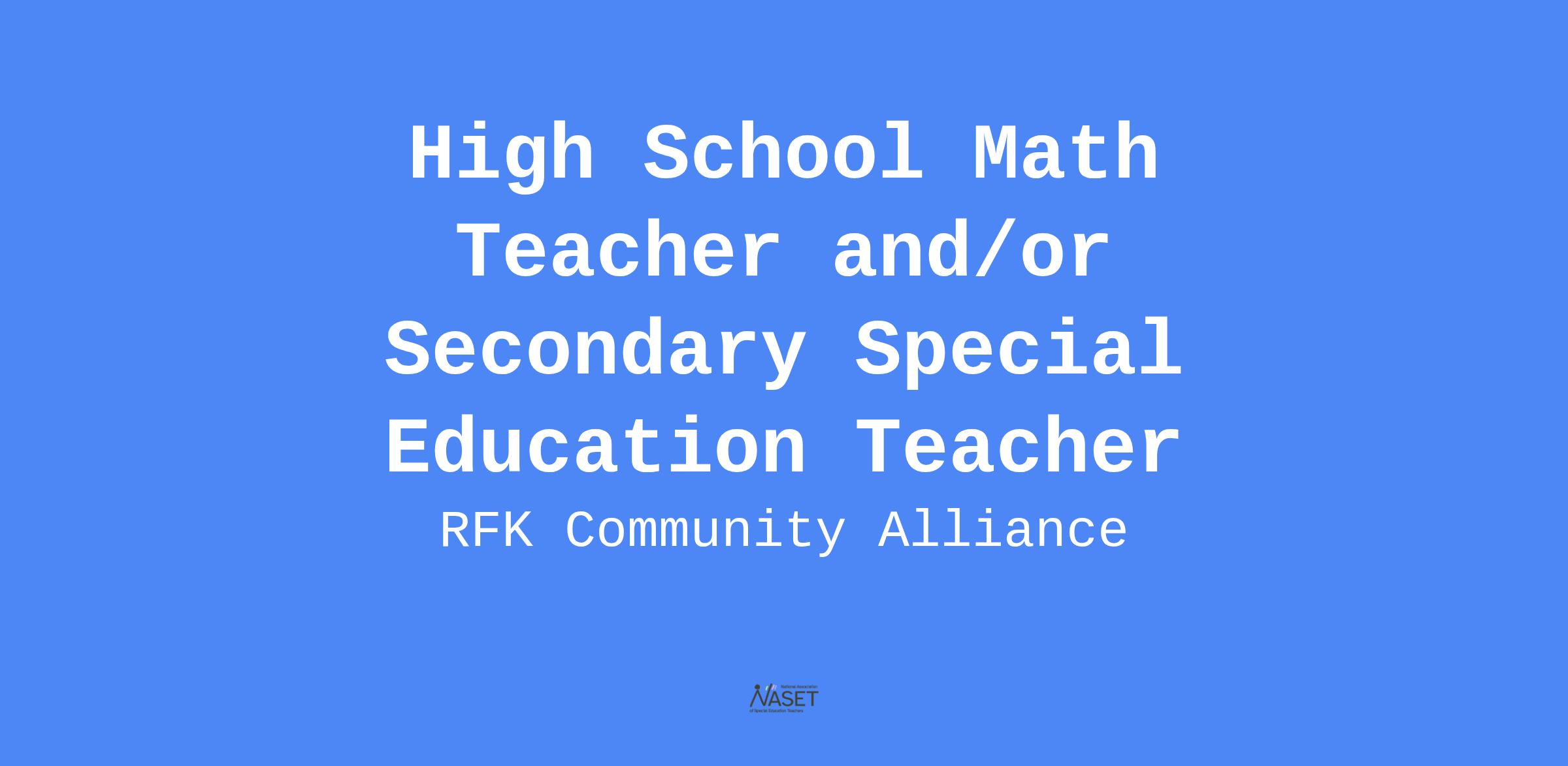 RFK Community Alliance has an exciting opportunity for a High School Math Teacher or Secondary Special Education Teacher in Springfield, MA!