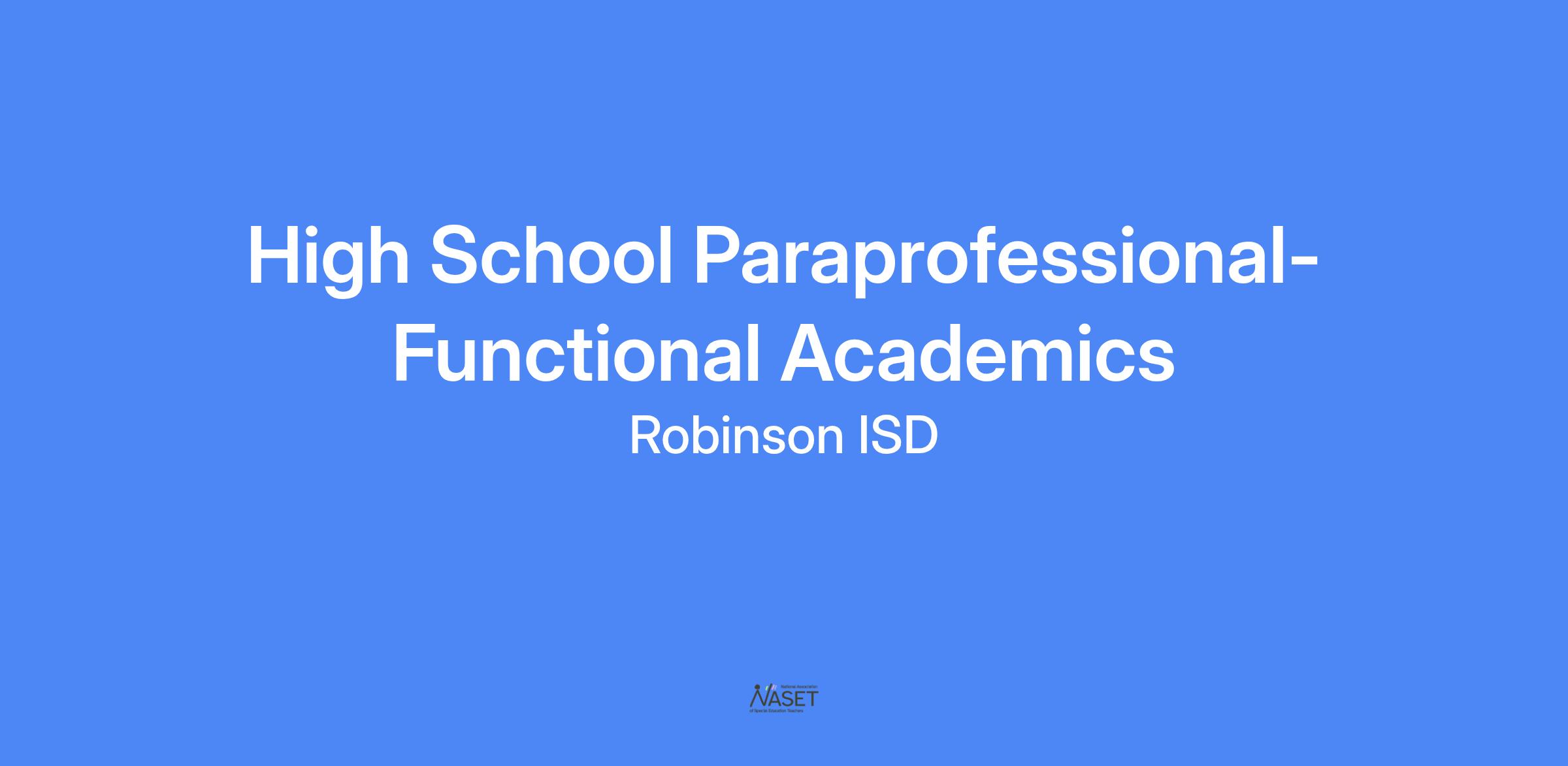 Job Title: Special Needs Paraprofessional -Functional Academics