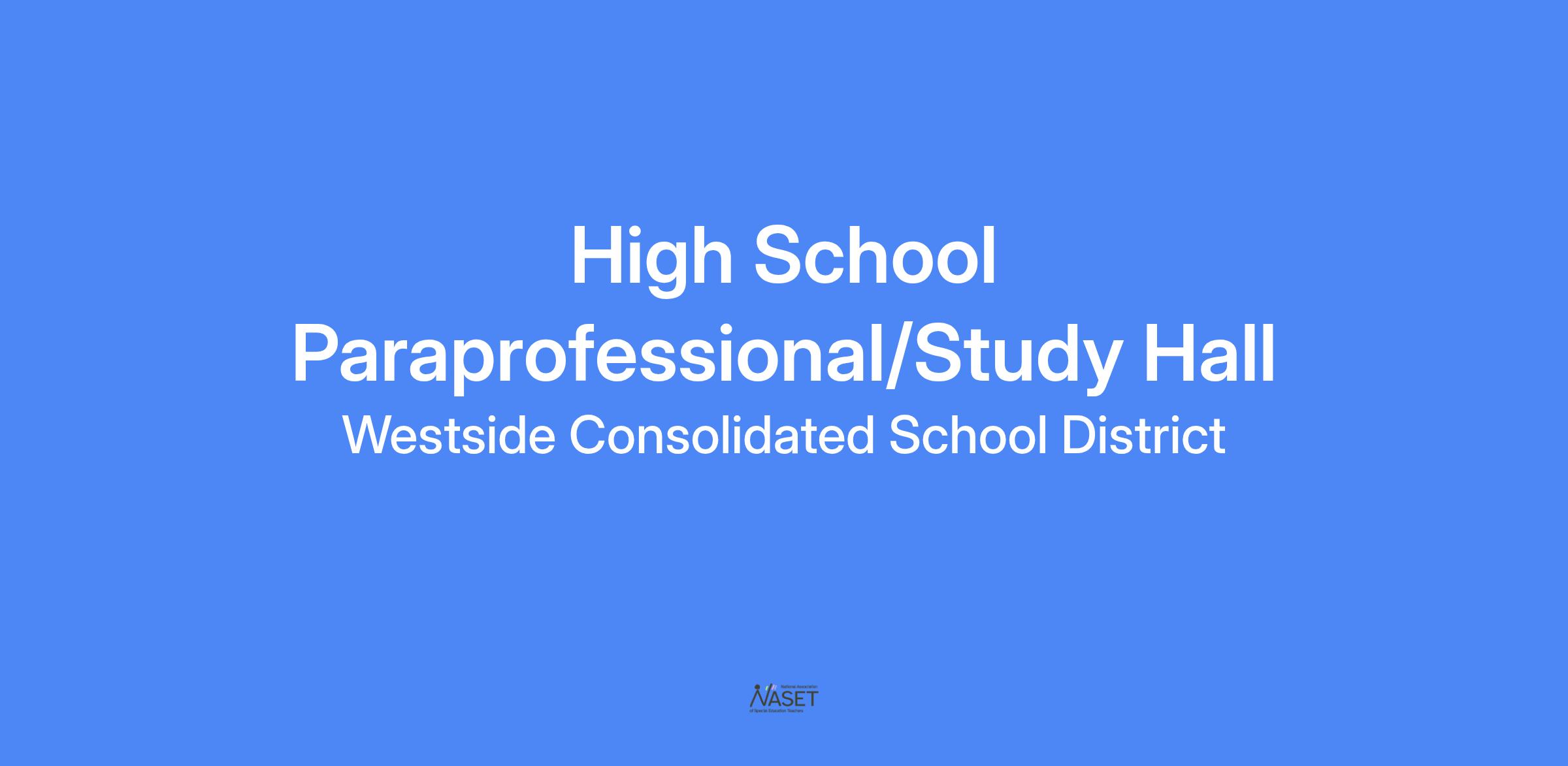 This position will be for a paraprofessional to staff study hall at Westside High School.