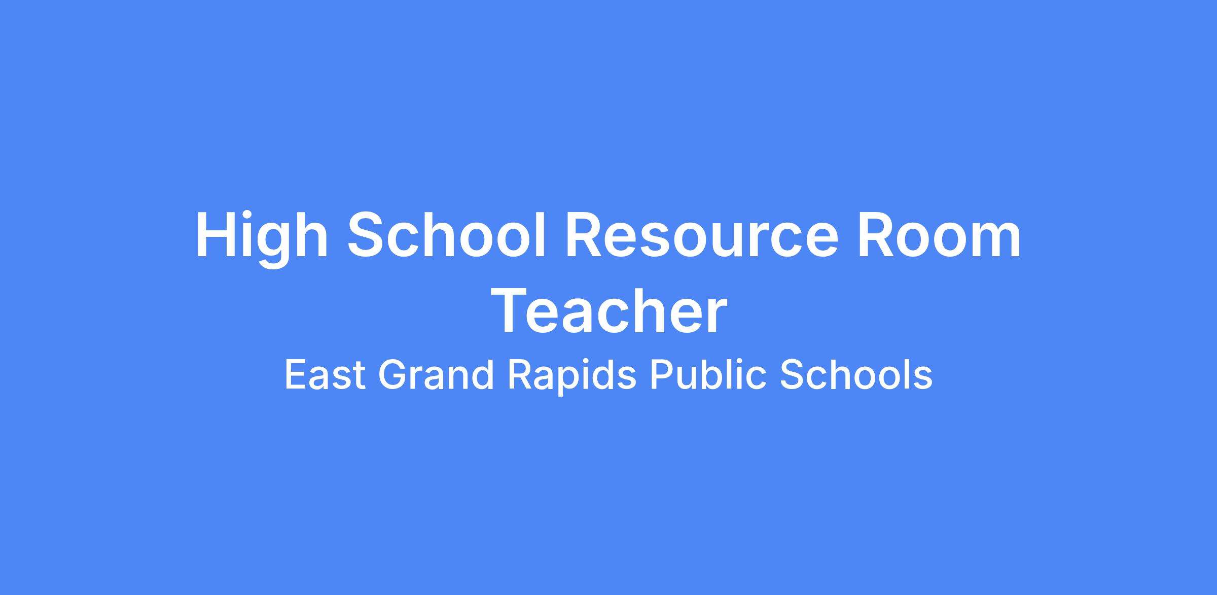 Job Title: HIGH SCHOOL RESOURCE ROOM TEACHER 1.0 FTE
