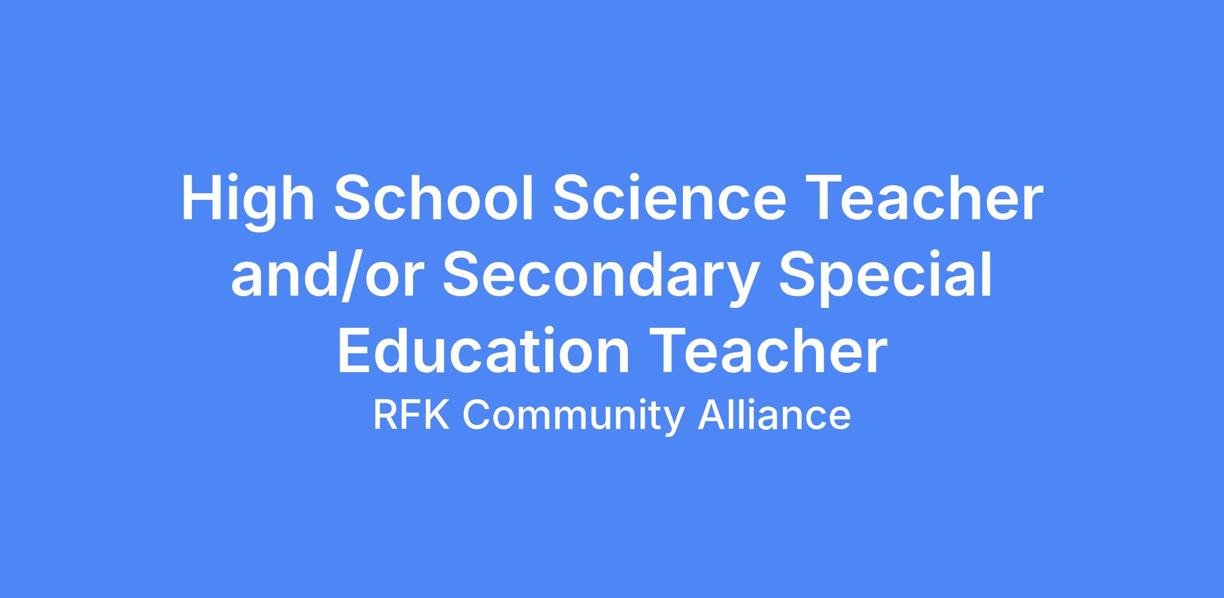 RFK Community Alliance has an exciting opportunity for a full-time Science Teacher to join our team in Lancaster, MA!