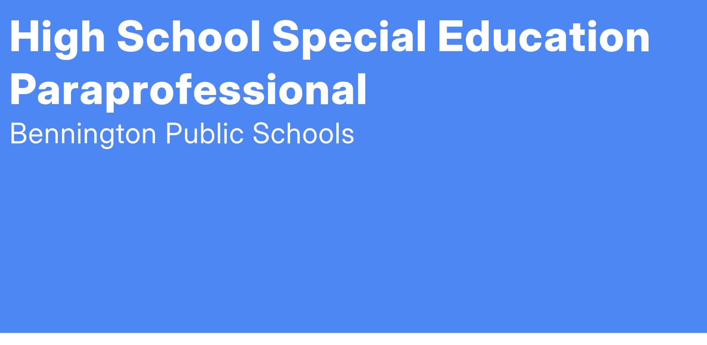 Job Title: High School Special Education Paraprofessional