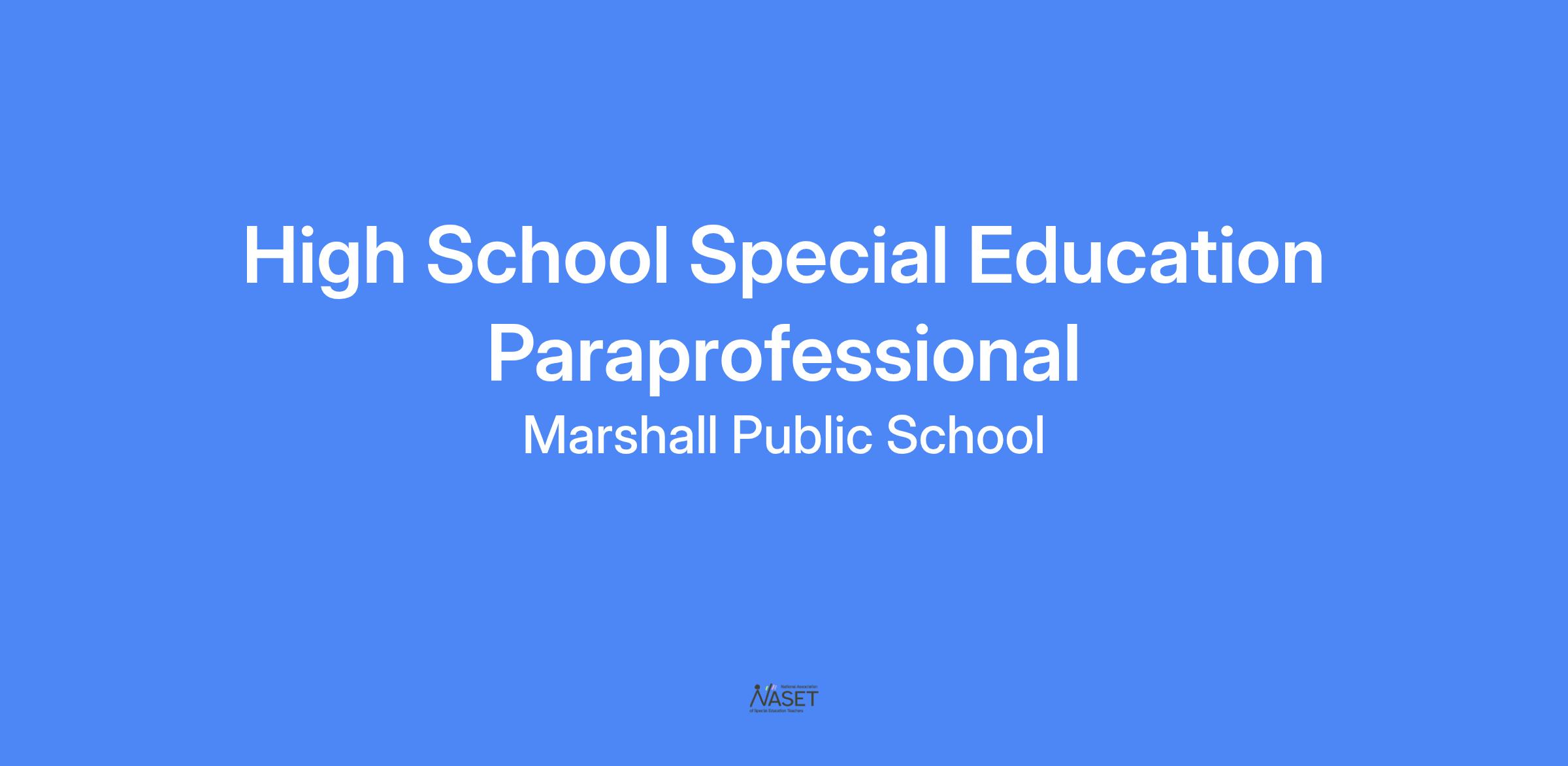 Marshall Public Schools is seeking applications for the position of Special Education Paraprofessional for the 2025-2026 school year. This position is located at Marshall High School serving students in grades 9-12.