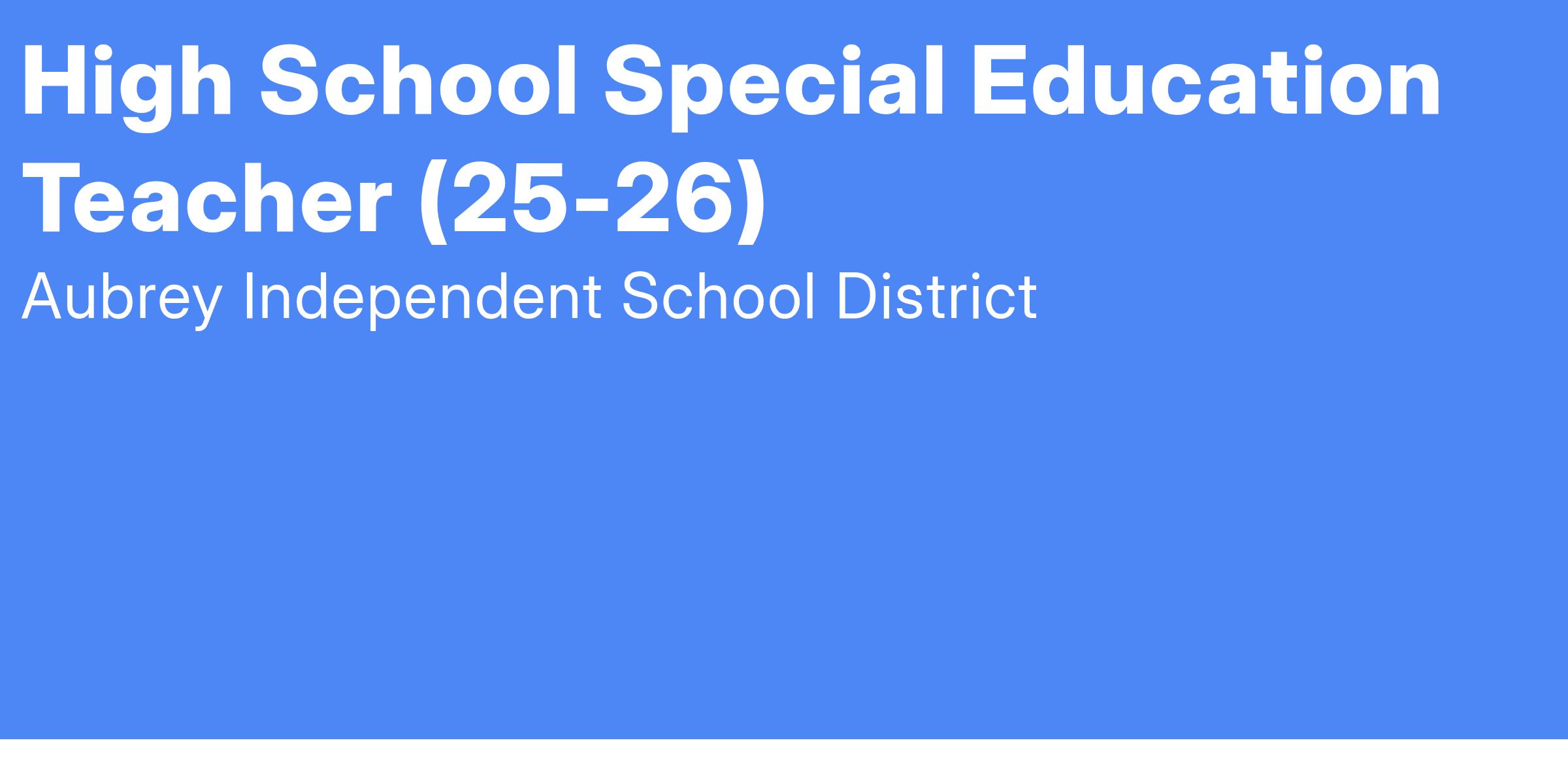 Job Title: High School Special Education Teacher (25-26)