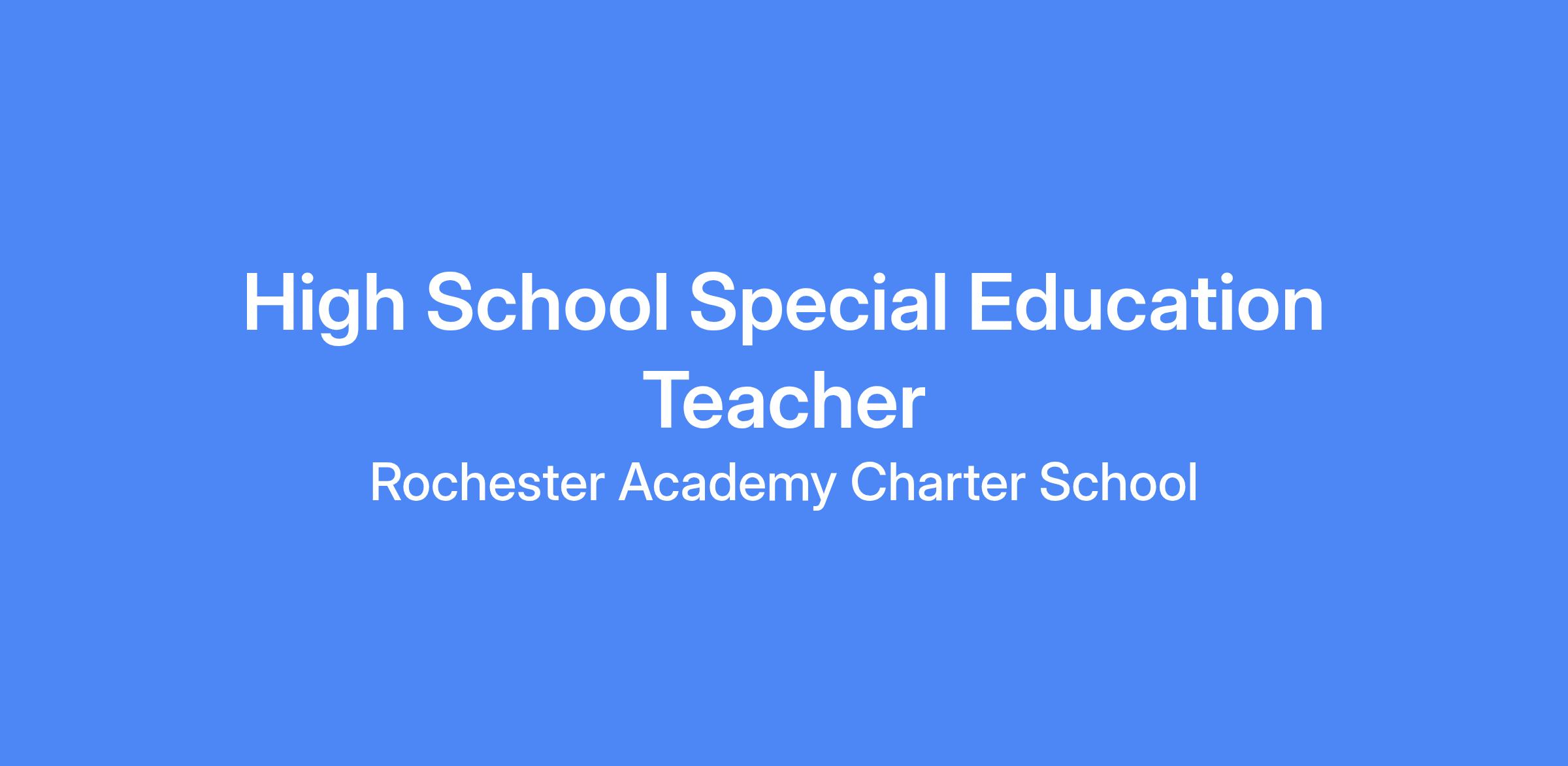 Rochester Academy Charter School (RACS) is currently seeking qualified candidates for the position of High School Special Education Teacher. This is a full-time contract position.