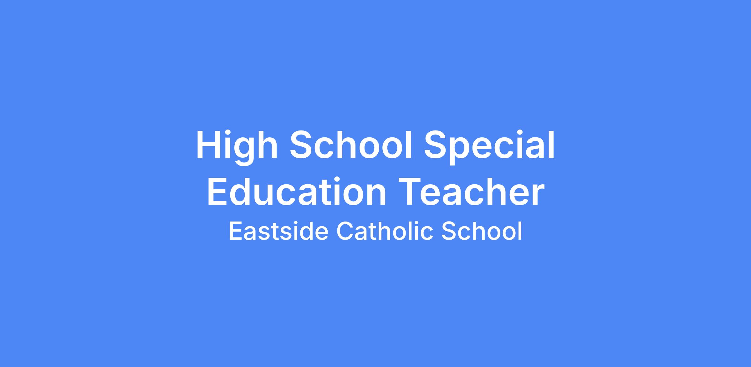 Eastside Catholic School is seeking a High School Special Education Teacher for the remainder of the 2025-26 school year to join our special education team. This position serves as a member of both the Options Program and the Learning Support Department.