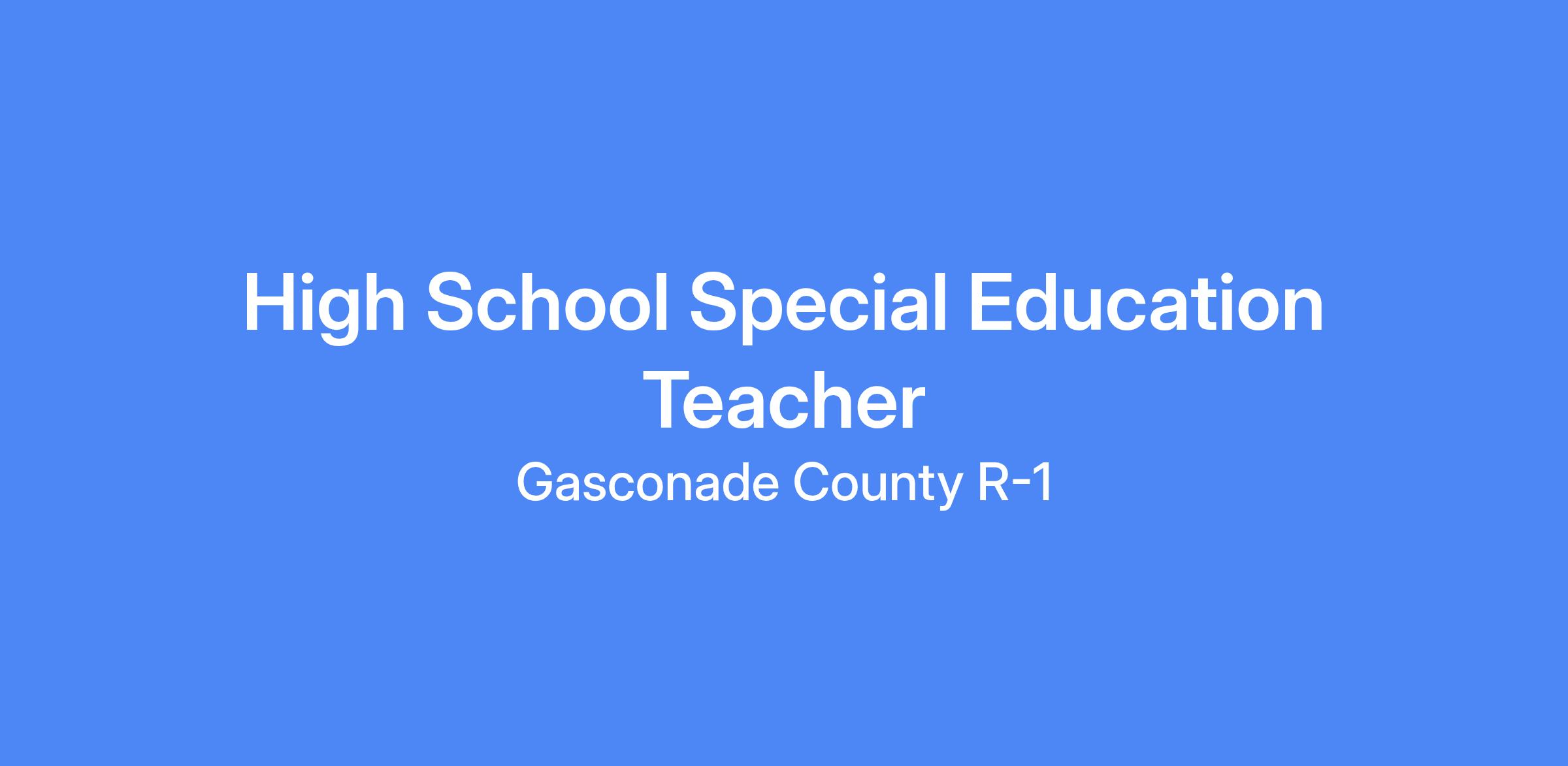 Gasconade County R-1 Schools is seeking applicants for a High School Special Education Teacher for the 2026-2027 school year. If you want to make a difference in a student's life by delivering high quality instruction and providing academic, emotional and physical services for students who require additional support to thrive in school, apply now!