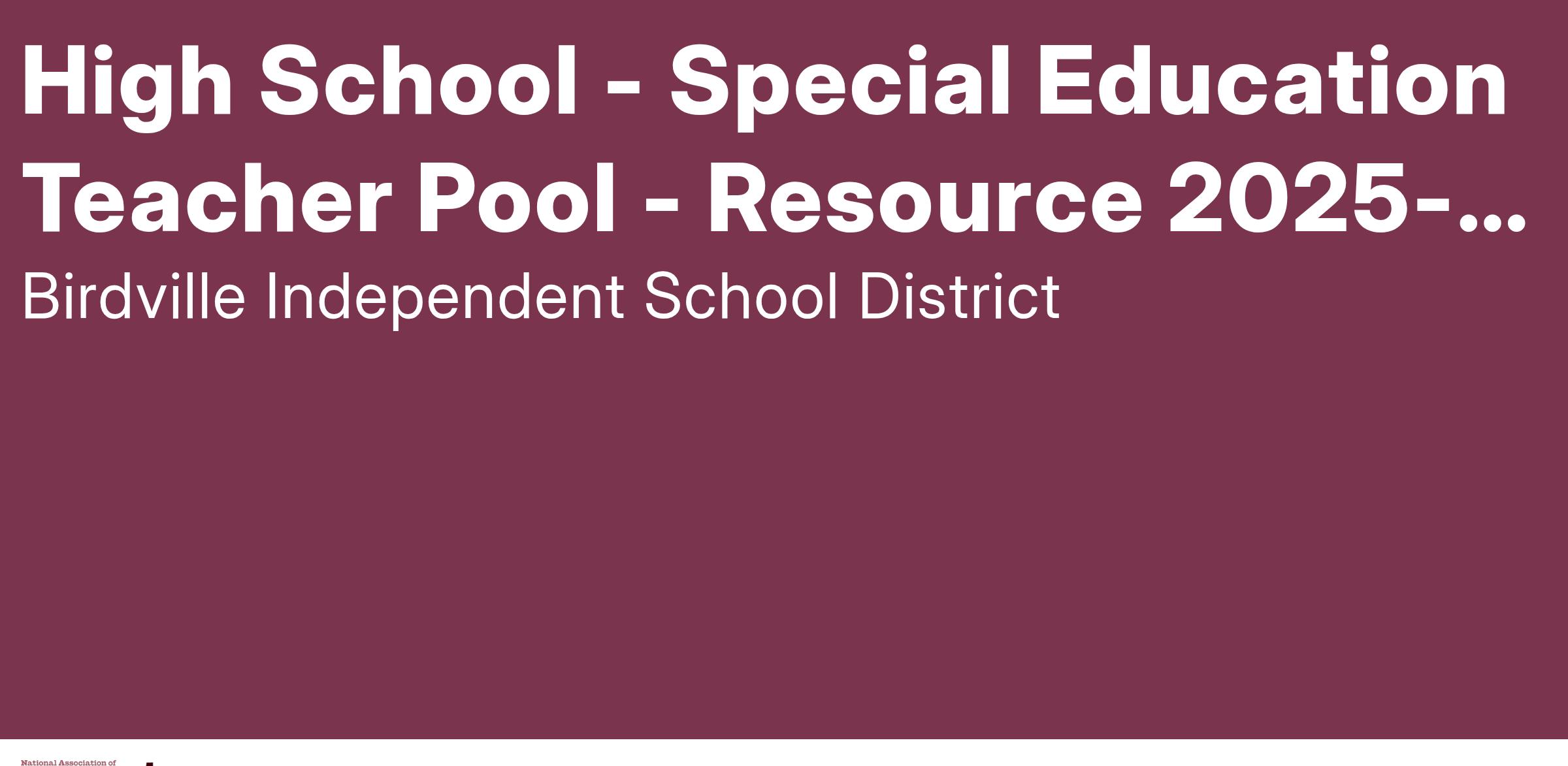High School - Special Education Teacher Pool - Resource 2025-2026