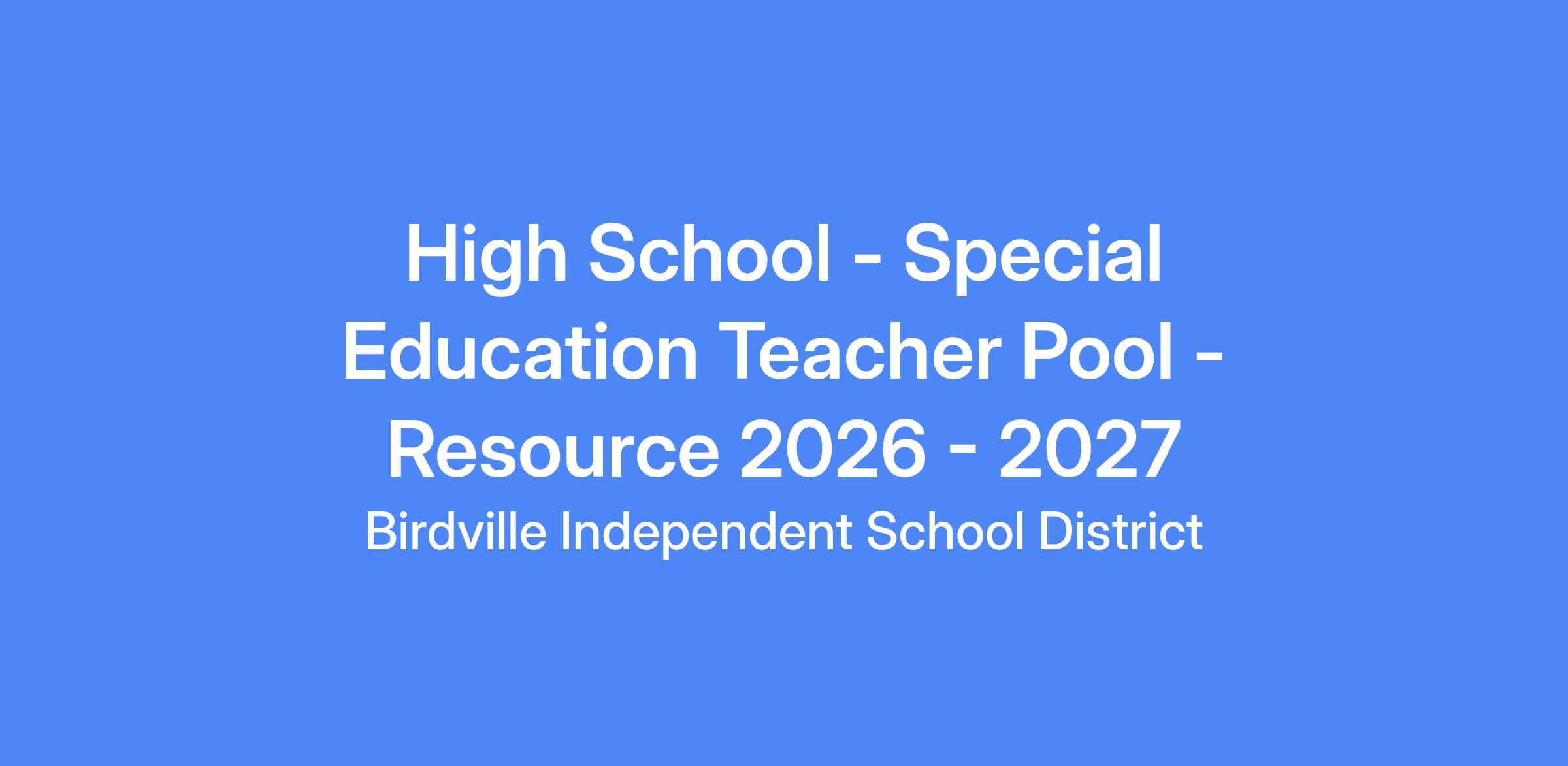 High School - Special Education Teacher Pool - Resource 2026 - 2027