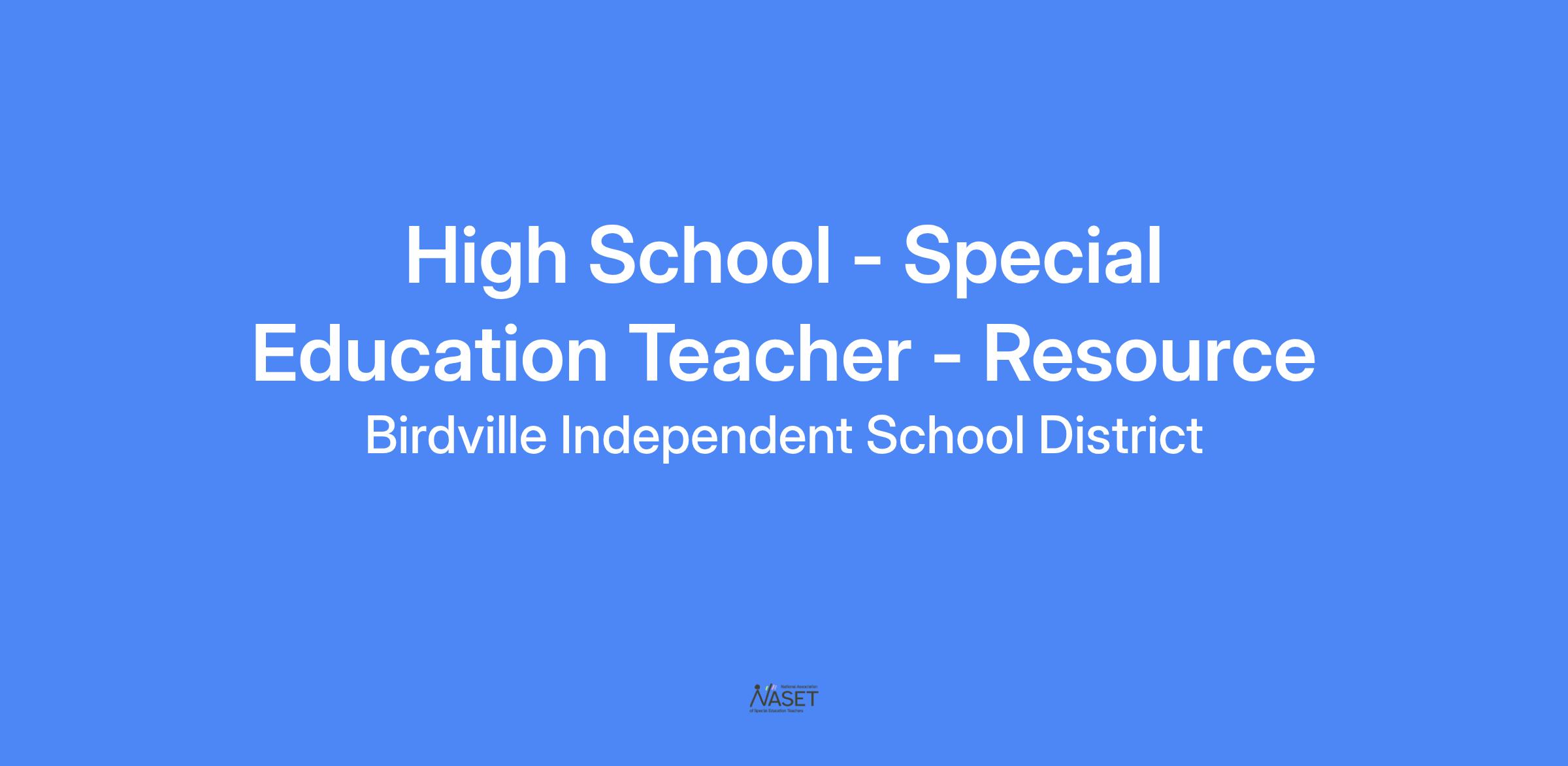 High School - Special Education Teacher - Resource