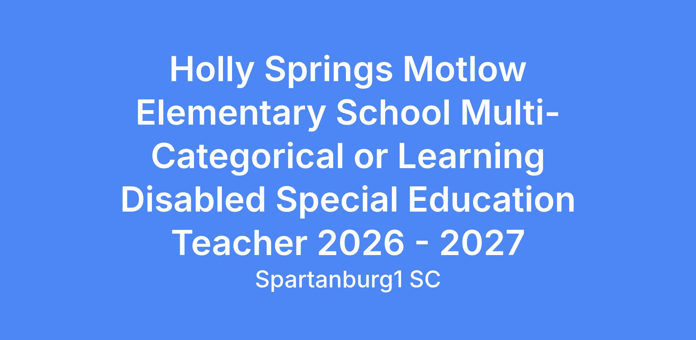 Holly Springs Motlow Elementary School Multi-Categorical or Learning Disabled Special Education Teacher 20256- 2027 (Countywide Satellite Class)