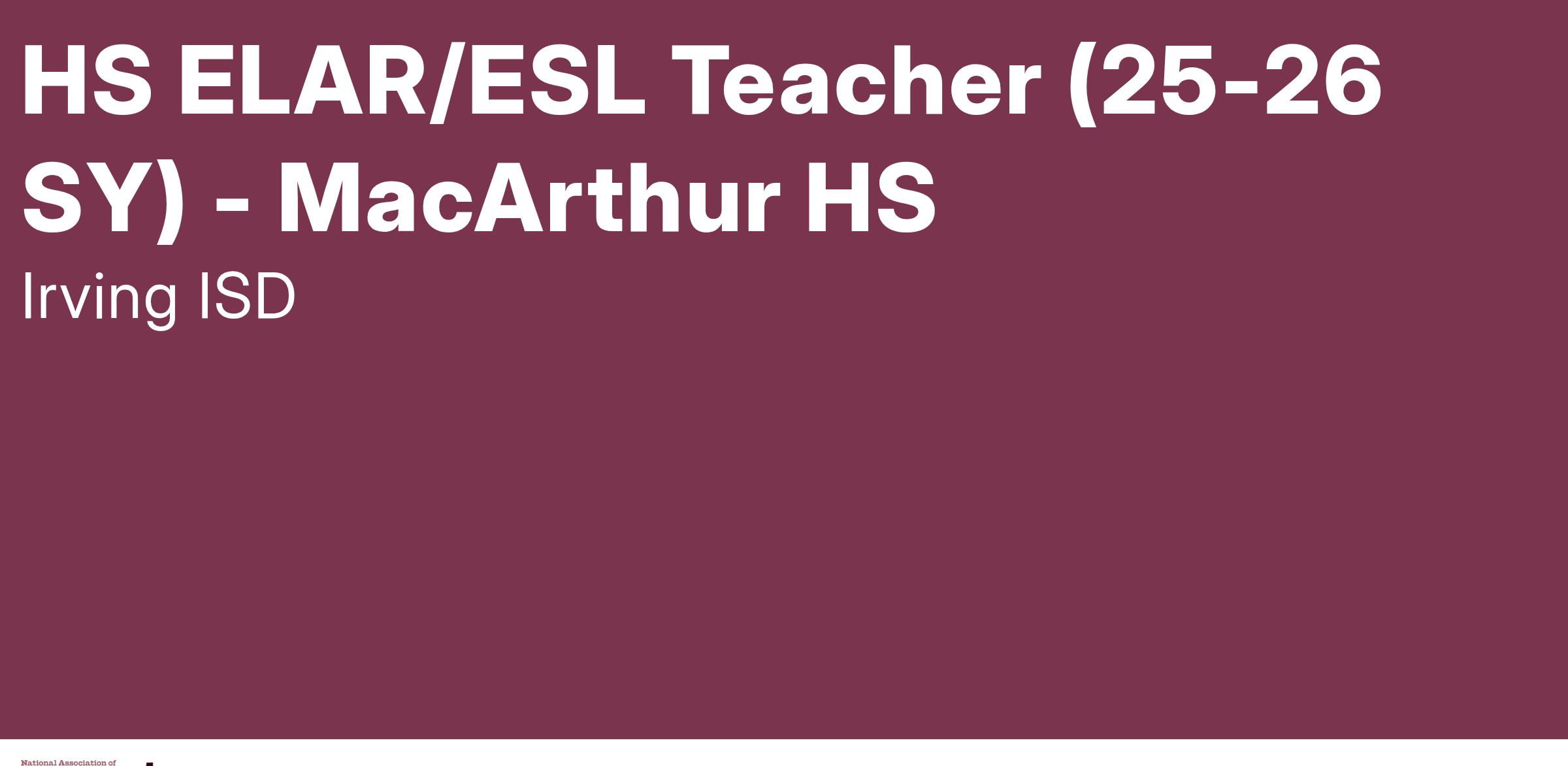 HIGH SCHOOL ELAR TEACHER