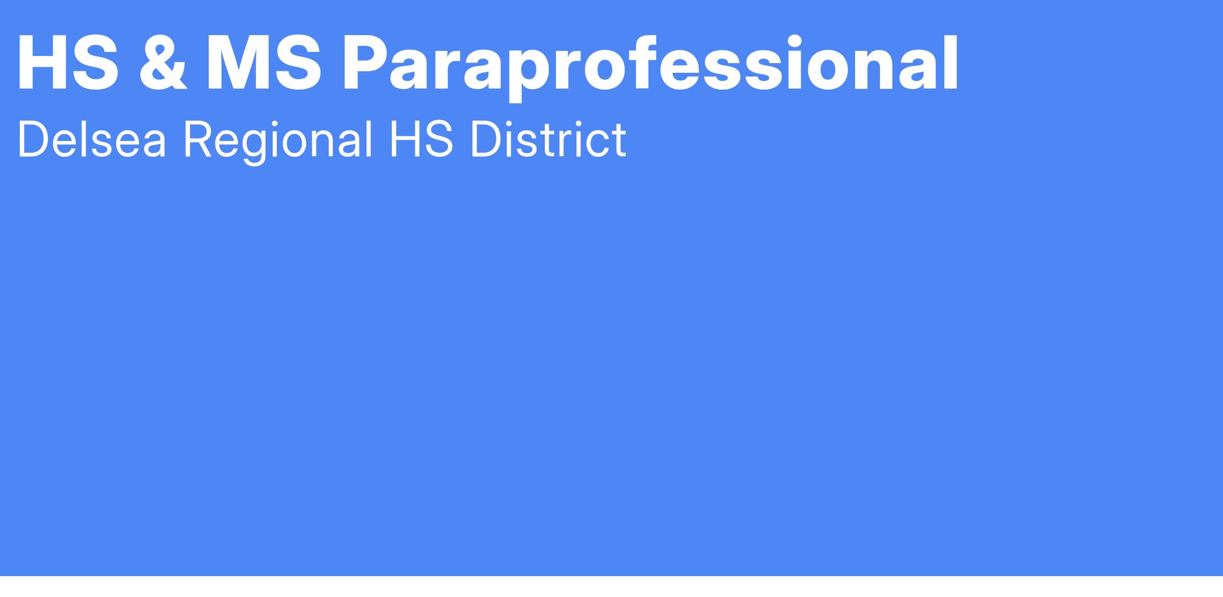 Paraprofessional (High School & Middle School) - substitute certification perferred