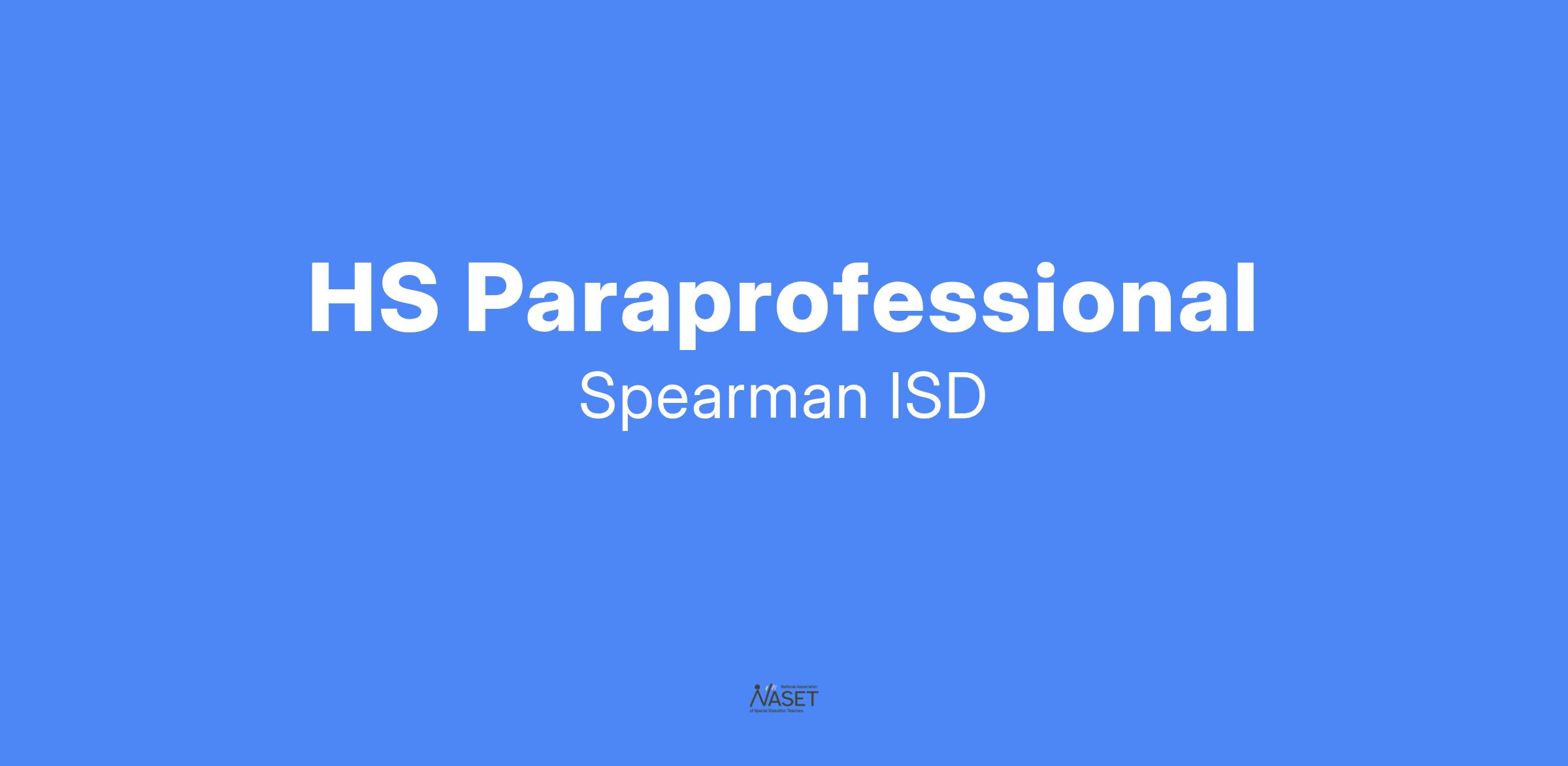 Spearman High School is seeking an inclusion paraprofessional for the 2025-2026 school year. This is a non-certified position. Paraprofessional will assist in the general education setting. The district contributes $466 towards employee health insurance.