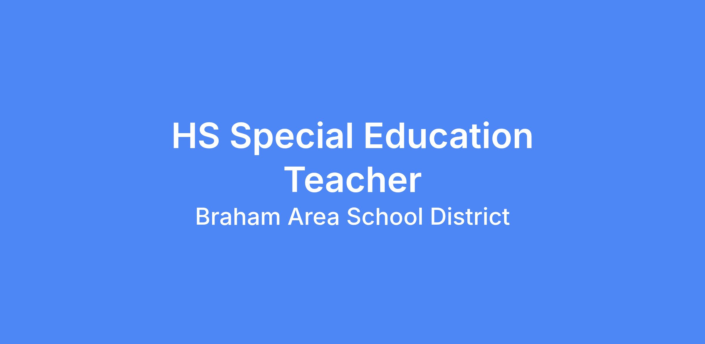 Description: Braham Area Schools has an opening for a 1.0 FTE HS Special Education Teacher starting the 2026-2027 school year.