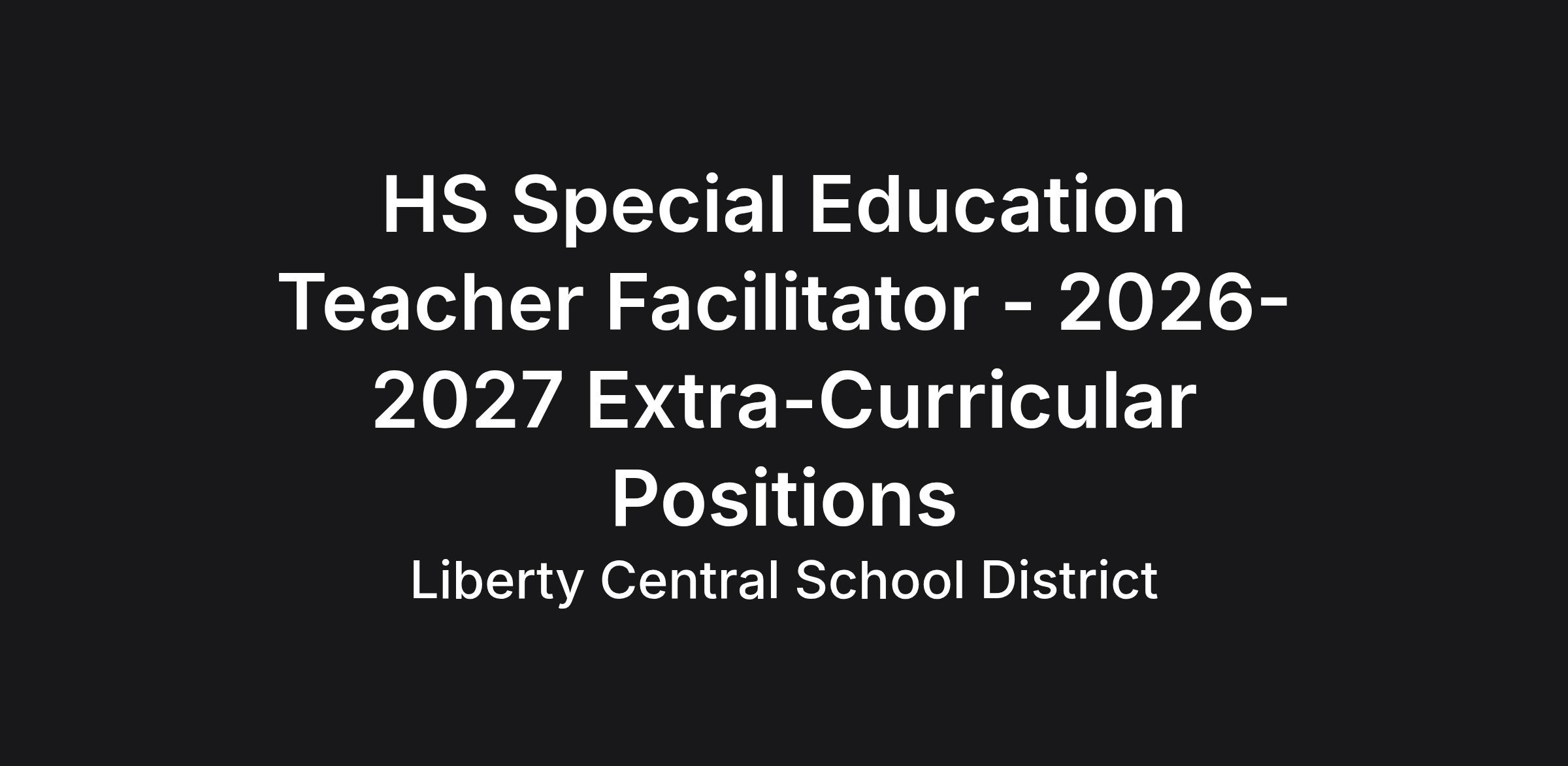 HS Special Education Teacher Facilitator - 2026-2027 Extra-Curricular Positions