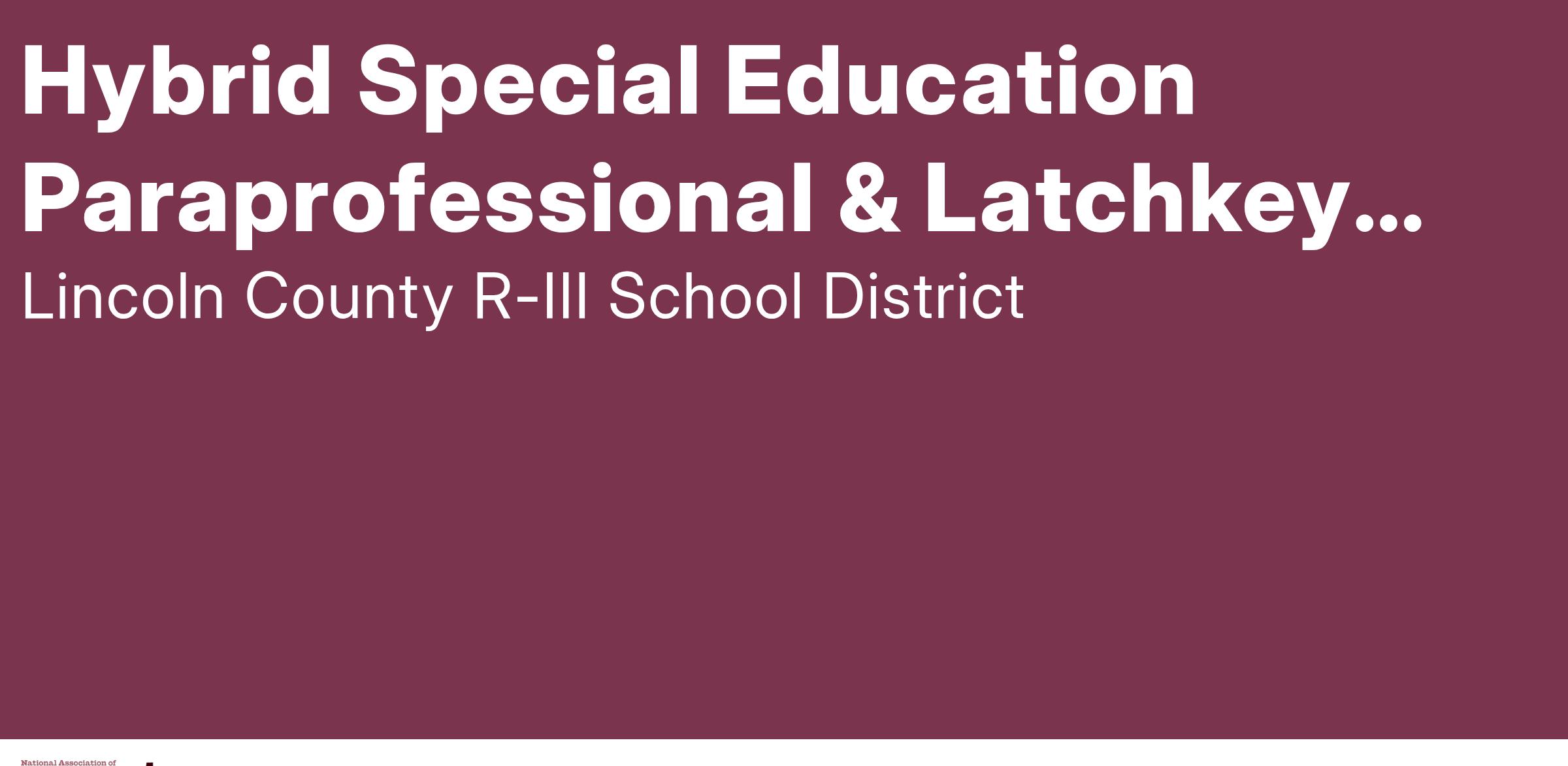 OPEN POSITIONS: Hybrid Special Education Paraprofessional & Latchkey Lead - Elementary