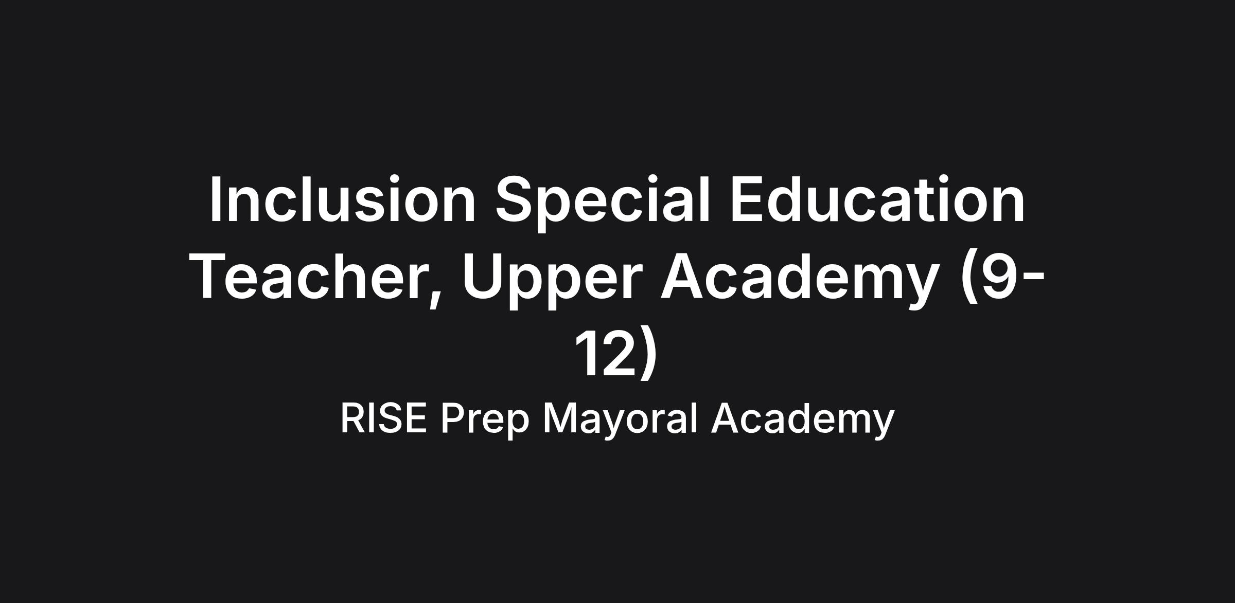 Be an Inclusion Special Education Teacher at RISE Prep Academies. RISE Prep Academies knows that educator quality is the most important factor driving scholar achievement. We are seeking educators who believe strongly in our mission and whose actions demonstrate high expectations for themselves, scholars, families, and colleagues. We hire smart, driven people who are relentless in their work and have the characteristics and experiences necessary to deliver ambitious results for scholars. RISE Prep Academies prioritizes professional development and growth for each of its educators.?
