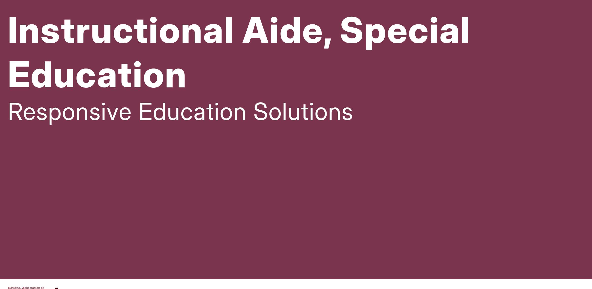 ResponsiveEd’s Special EducationInstructional Aide position is ideal for a candidate looking to gain valuable experience in Special Education teaching. Special EducationInstructional Aides support the Special Education teacher as they work with students who have a wide range of learning, cognitive, emotional, and physical disabilities to support their academic needs.