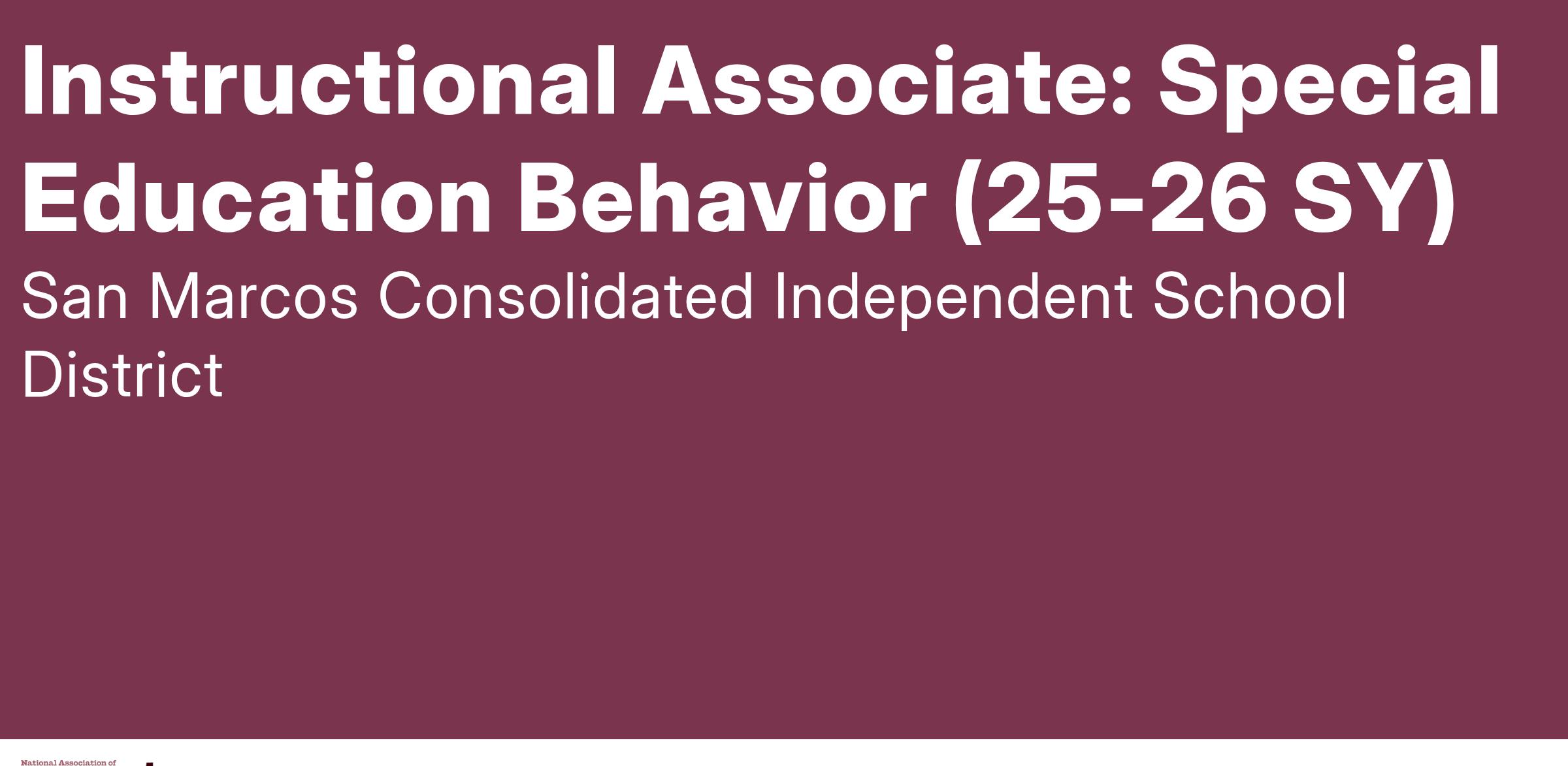 JOB TITLE: Instructional Associate – SPED WAGE/HOUR STATUS: Nonexempt