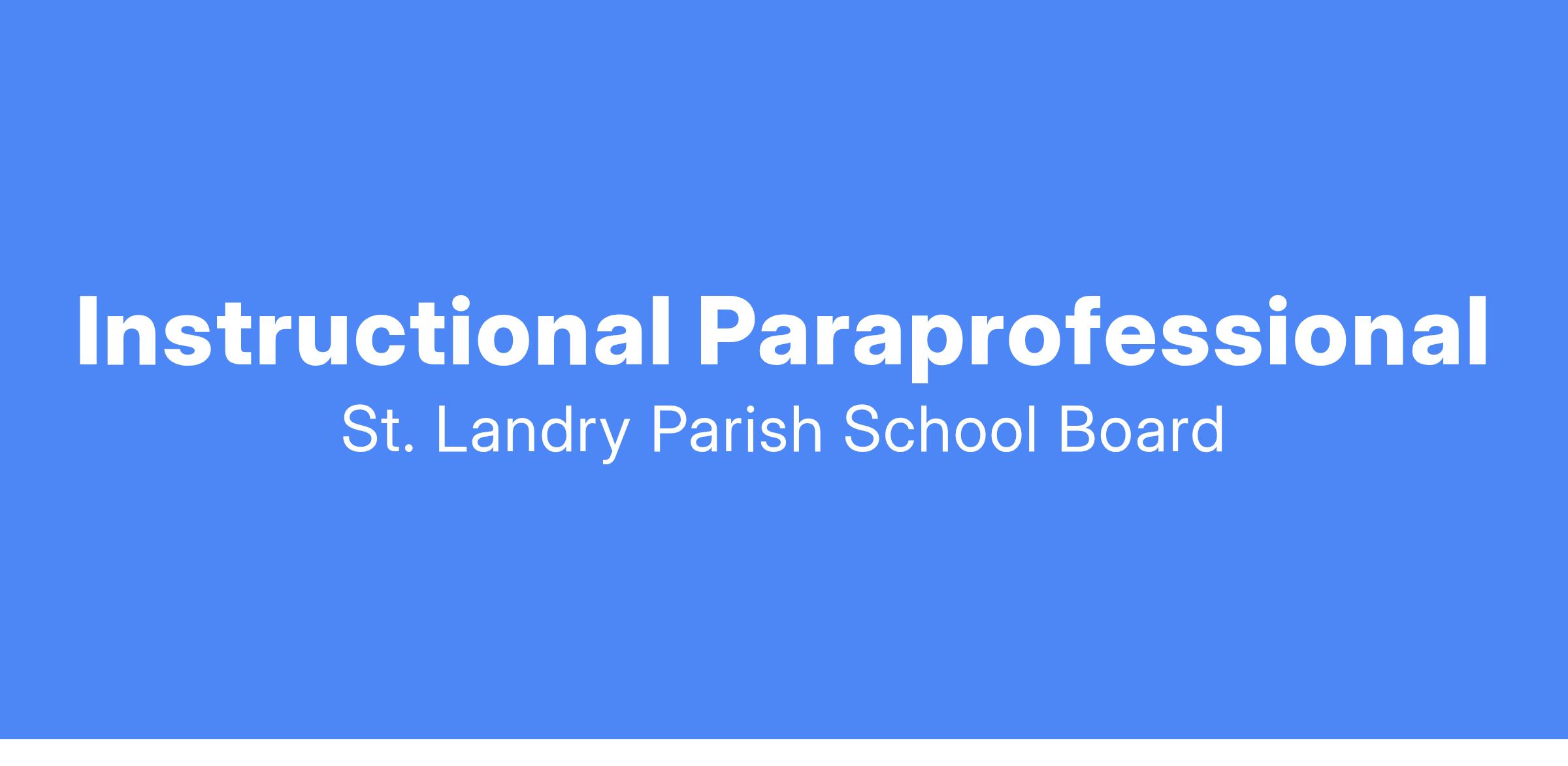 To assist the teacher with teaching related activities necessary for the efficient operation of the classroom. Instructional paraprofessionals make work with individual students or work with students in groups. Class assignments may vary from year to year or during the school year, depending on student needs.