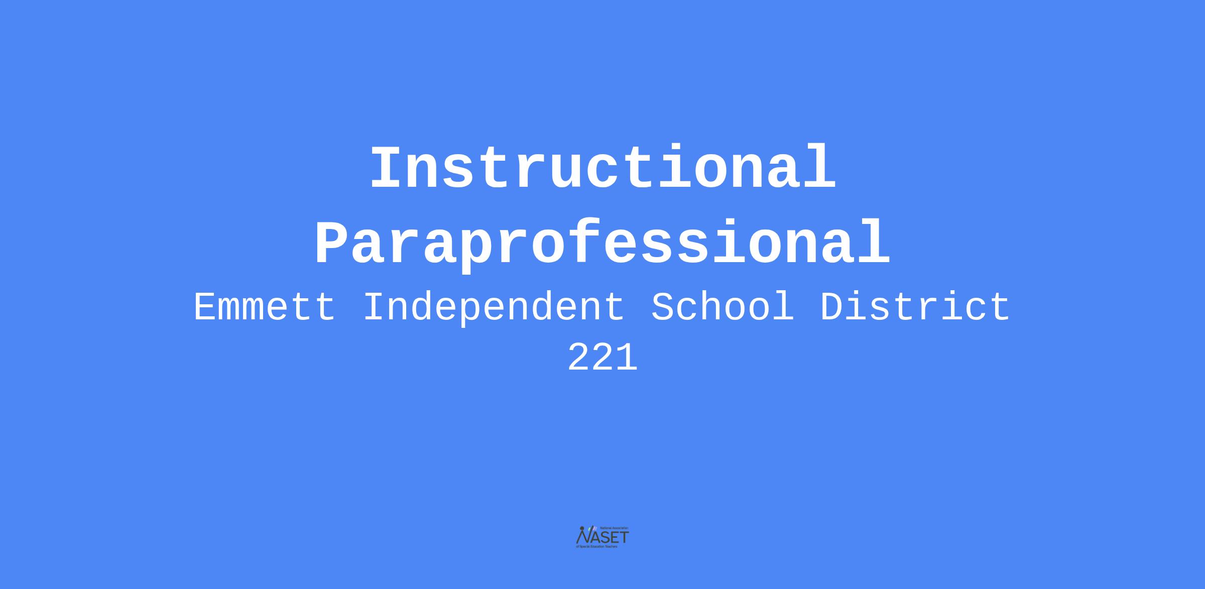 Instructional Paraprofessional-Emmett Middle School Position Purpose Under the direct supervision of certified staff members, to assist certified professional staff with students in the classroom to meet instructional goals and objectives. Supervision of students inside and outside the school building.