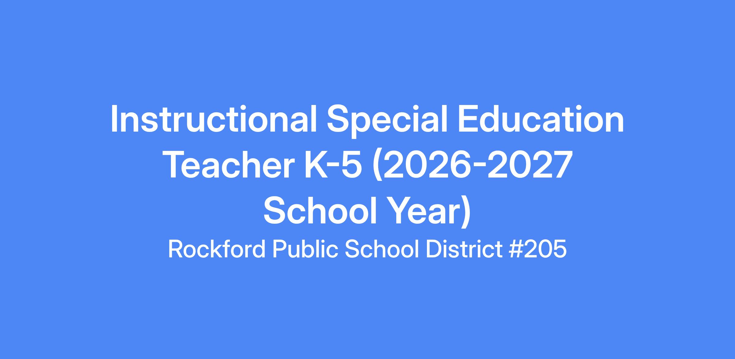 Job Title: Teacher (Instructional Special Education Teacher K-5)
